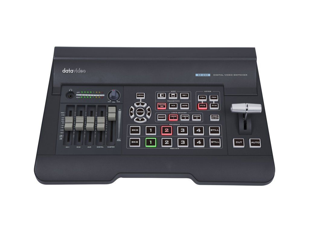 SDI a HDMI vstupyDatavideo SE-650 je cenově nejdostupnější SDI+HDMI přepínač. Se 2 SDI vstupy a 2 HDMI vstupy je tento přepínač kompatibilní s profesionálními i běžnými fotoaparáty, přičemž je jedním z nejlevnějších přepínačů v naší nabídce.Snadné ovládání, profesionální výkonDíky intuitivnímu ovládacímu panelu je přepínání hračkou jak pro zkušené uživatele, tak i pro začátečníky. Ačkoli je určen především pro začínající uživatele, Datavideo SE-650 je nabitý pokročilými funkcemi, jako je například chromakey (barevné klíčování).Ohromující video efekty obohatí scénuUpstream klíčovače (USK), downstream klíčovače (DSK) a generátory obrazu v obraze (PIP) v kombinaci s dvojitým barevným klíčováním (chromakey) vám dávají dostatek svobody pro kreativitu.Integrovaný audio mixerIntegrovaný audio mixer zajišťuje, že máte vše, co potřebujete pro ovládání vstupních úrovní zvuku. U většiny produkcí to znamená, že není nutné kupovat samostatný externí audio mixer.Integrované animace a pozadíVyberte si mezi řadou předprogramovaných animovaných přechodů a virtuální sadou pozadí.Uživatelské pamětiSložitý proces můžete uložit do uživatelské paměti a spojit více úkolů dohromady do jedné úlohy, na kterou vám bude stačit použít jediný prst.Profesionální 10-bitový přepínačPoskytuje profesionální a tu nejlepší kvalitu zpracování videa.Technické parametry:Formát videa: 1080i 50/59.94/60Hz 720p 50/59.94/60HzVideo vstup: 2x HD-SDI 2x HDMIVideo výstup: 2x HDMI 1x HD-SDIPřepínač A + V: AnoChromakey: 2Obraz v obraze: 1Vložení loga: 1Vestavěný audio mixer: Ano 4 kanályDálkové ovládání PC: DVIP (Ethernet)Rozměry: 400 x 250 x 82 mmHmotnost: 1.9 kgNapájení: DC 12V, 29WProvozní teplota: 0 až 40°CMožnosti: CB-46/47/60/61/62Obsah balení:1x Přepínač Datavideo SE-6501x AD přepínač DC 12V s AC kabelemDoplňkové parametry
