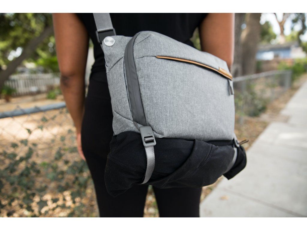 - Přes rameno nebo kolem pasu: Popruh brašny Sling 3L a 6L lze rychle přenastavit a nosit ji přes rameno nebo kolem pasu.