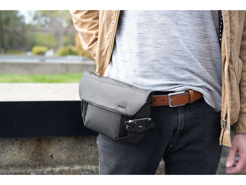 Přiložený ultralehký nastavitelný popruh umožňuje nošení přes nebo na rameni, poutka na opasek umožňují nošení v pase. S lehkou foto výbavou připojte držák Capture (prodává se samostatně) a noste fotoaparát vně pouzdra – fotoaparát je tak vždy po ruce a zvýšíte úložný prostor pro příslušenství.