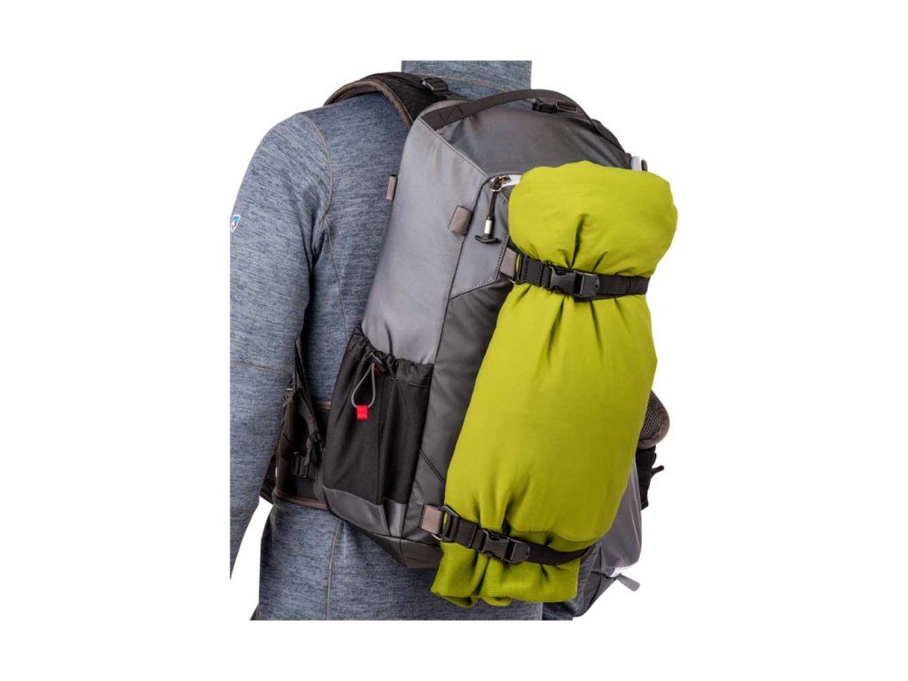Šest poutek podél batohu a dva kompresní popruhy slouží k upevnění dalšího vybavení, jako je malý stativ, turistické hůlky, bunda nebo cyklistická helma. Na straně batohu se nachází flexibilní kapsa, do které se vejde 1l láhev na vodu, kterou lze zajistit pomocí šňůrkového zámku. Tato kapsa může také sloužit k uložení stativu, monopodu nebo trekingových holí, které lze upevnit pod jeden z přiložených kompresních popruhů. Součástí batohu PhotoCross 15 je také nepromokavá pláštěnka potažená PUR z obou stran.