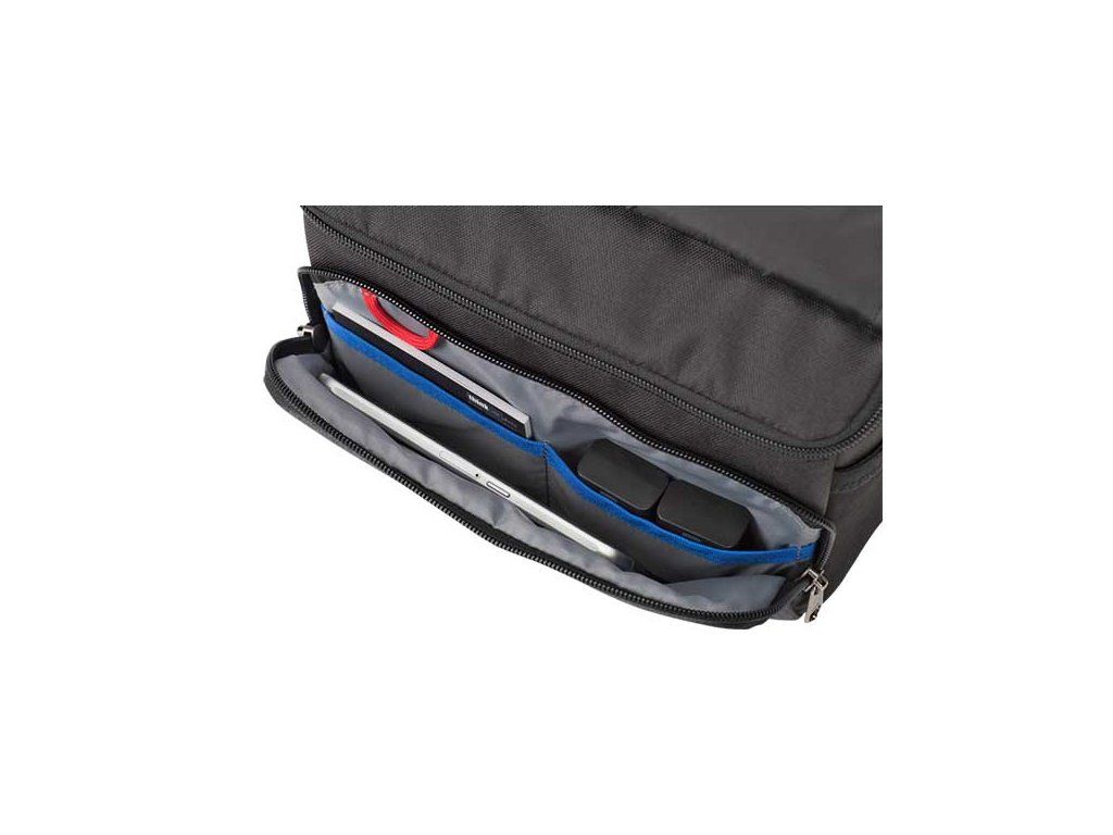 Na vnitřní straně brašny je samostatná přihrádka pro iPad nebo jiný tablet s úhlopříčkou až 10 palců. Brašna je vybavena mnoha kapsami pro bezpečné uložení paměťových karet, kabelů, nabíječek, mikrofonů a dalších drobných doplňků. Další ochranu poskytuje flip-top klopa, která se překlápí přes hlavní prostor a přední kapsu a zapíná se pomocí magnetického uzávěru.