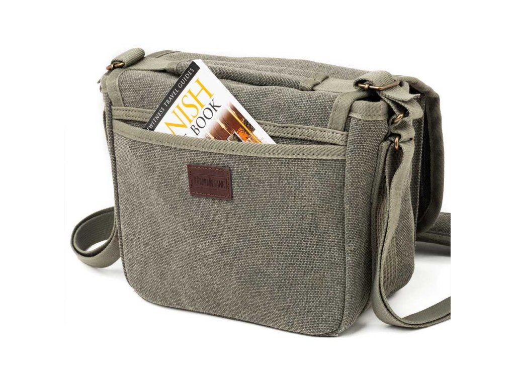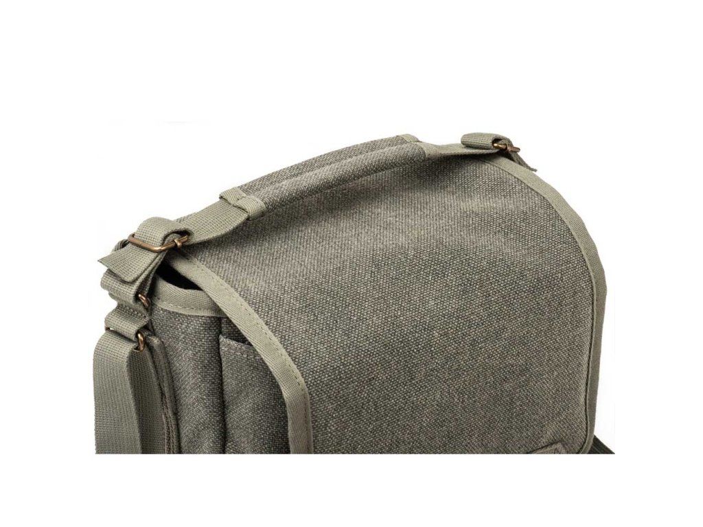 Podél zadního panelu brašny je umístěna velká kapsa, do které lze pohodlně uložit různé mapy, zápisníky nebo dokumenty. Přední přihrádka s organizérem obsahuje několik kapes, včetně kapsy na zip pro uložení cenností nebo dalšího příslušenství k fotoaparátu, jako jsou baterie nebo filtry.
