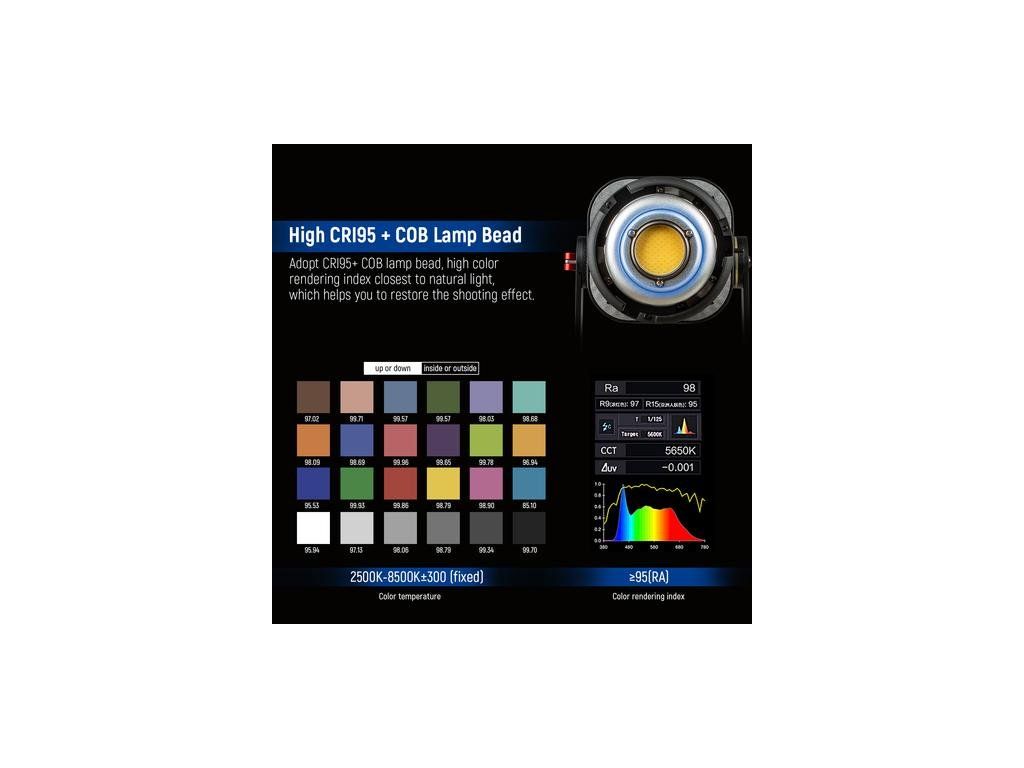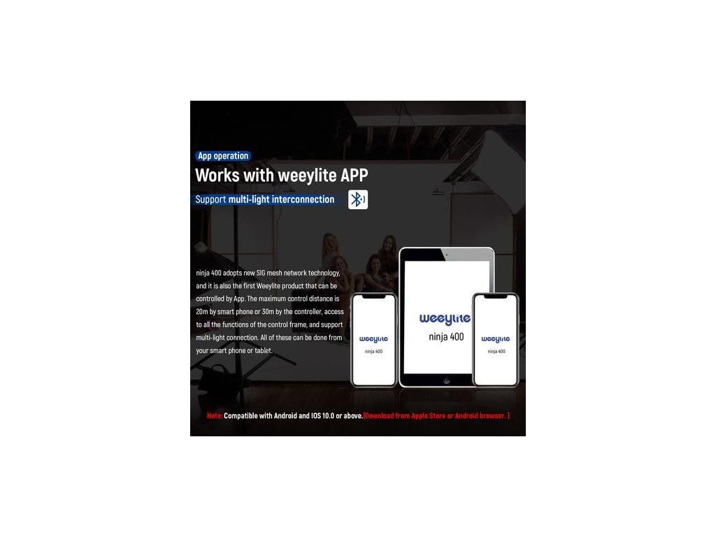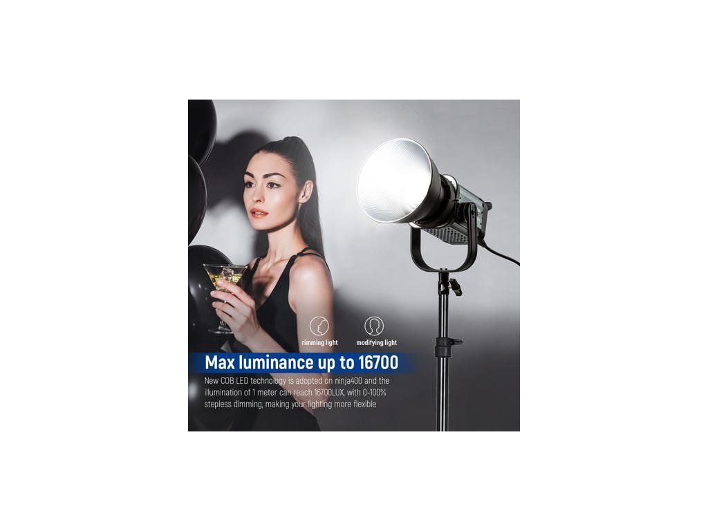 Díky nové technologii COB je Weeylite Ninja 400 vyrobena z dvoubarevných COB LED žárovek s vysokým indexem podání barev, vysokou světelnou účinností, teplotou barev a dlouhou životností, které lze použít ve fotografii, studiu, výstavní síni a při líčení atd. Slušná volba výplňového světla pro scény s vysokými standardními požadavky na světelné zdroje.