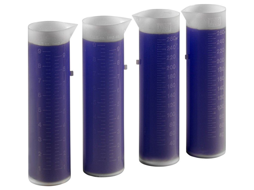 Díky odděleným měřicím sadám pro různé chemikálie bude vaše chemie vždy bez kontaminace jinými látkami. Jemná stupnice přispívá k přesnosti a kádinka usnadňuje vylévání chemikálií do výtahu JOBO nebo do jiných lahví.Obsahuje 4 kusy odměrky #3308 o objemu 260 ml.Doplňkové parametry