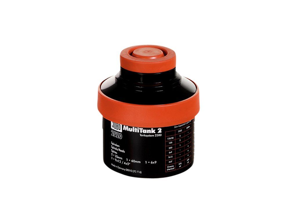 Malá univerzální nádrž pro řadu nádrží 2500. Lze jej použít pro 35mm film, svitkový film 120 a archový film až do velikosti 4x5". Ideální pro použití s procesory JOBO.Obsahuje: jednu nádrž č. 2520 bez cívky.Doplňkové parametry