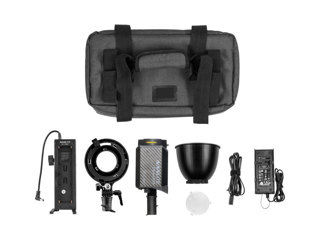 Nanlite Forza 60B s držákem baterií a Bowens adaptérem