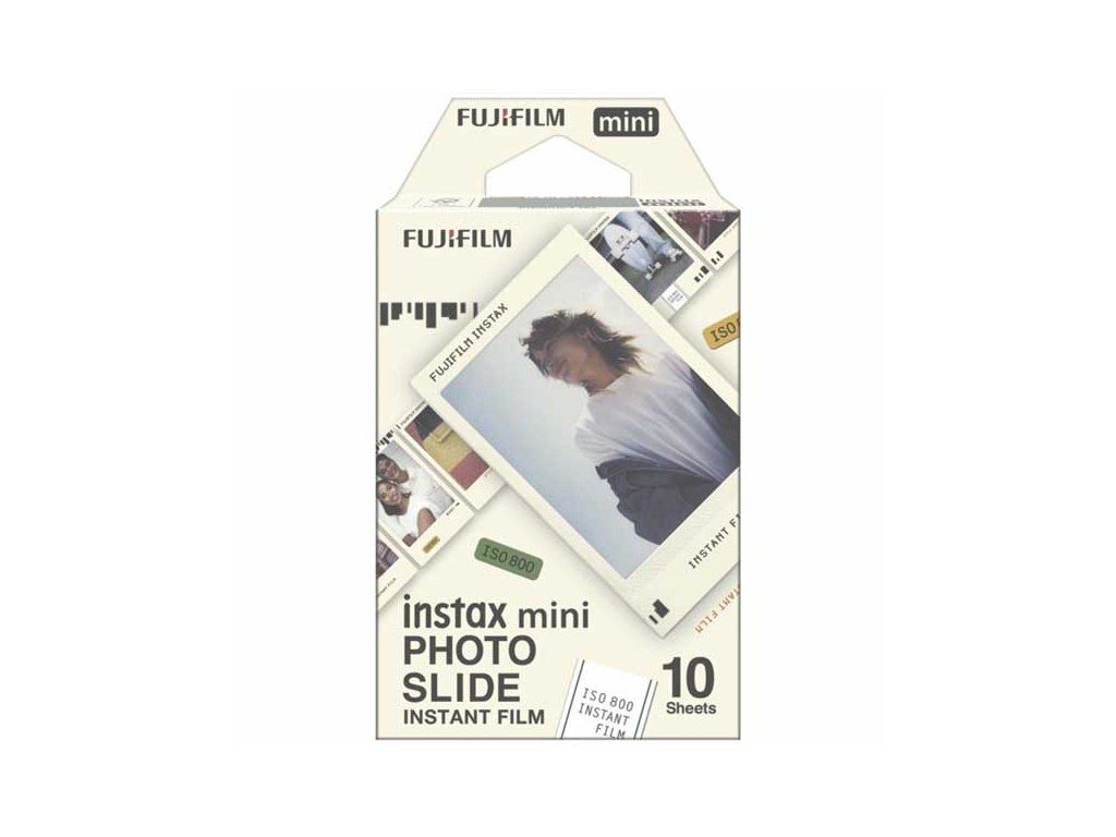 Film instax Mini Photo Slide je určen pro fotoaparáty instax Mini, včetně modelů 11, 12, 99 a Instax mini EVO Hybrid, a také tiskárny instax Mini Link. Filmová kazeta poskytuje okamžité fotografie, které můžete vložit do alba, fotorámečku nebo jednoduše nalepit na lednici.