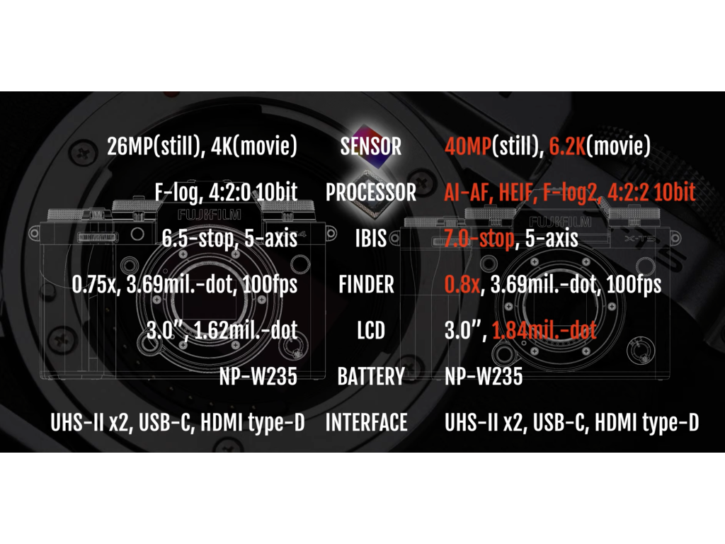 Kromě F-Log podporuje X-T5 také F-Log2, který zaznamenává rozšířený dynamický rozsah o více než 13 stupňů. Tento rozsah je širší než současný F-Log, což rozšiřuje možnosti postprodukce.
