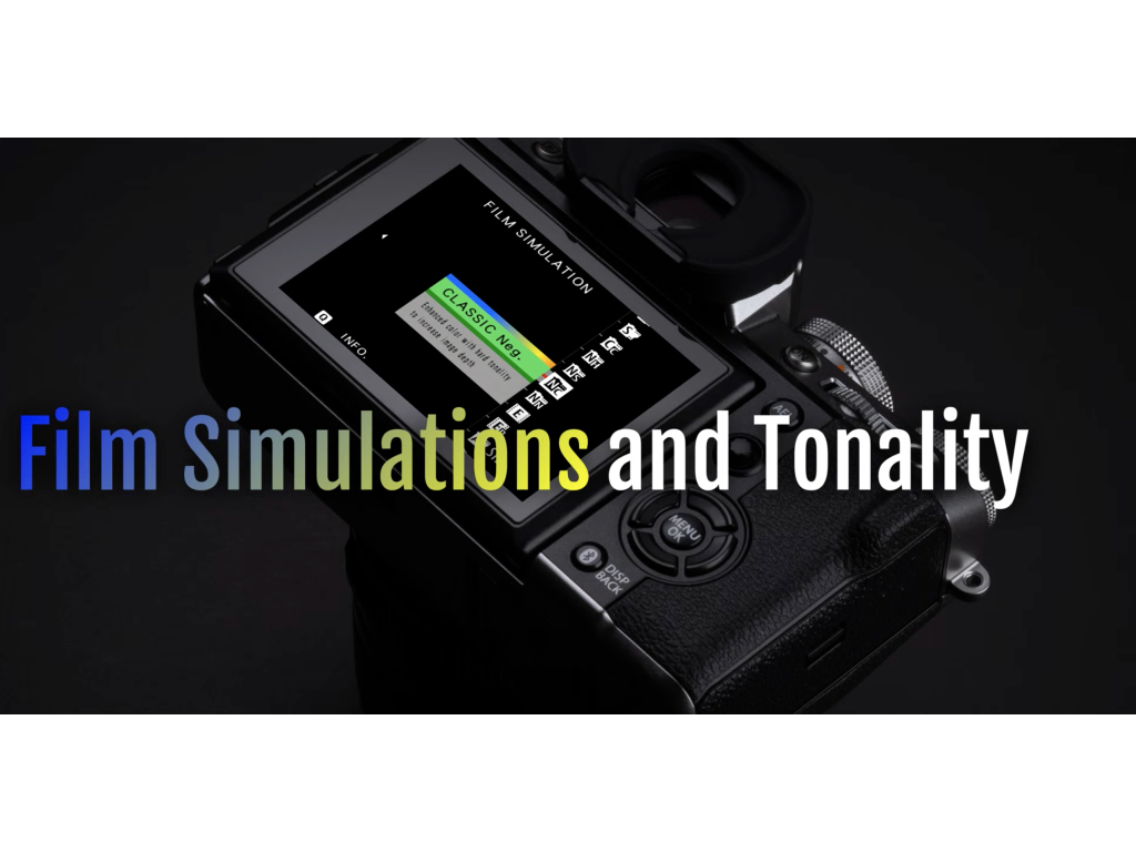 Režimy filmové simulace vám umožňují reprodukovat vzhled některých klasických typů filmů FUJIFILM, včetně Provia, Velvia, Astia, Classic Chrome, PRO Neg.Std, PRO Neg.Hi, Classic Neg., Nostalgic Neg., Eterna Cinema, Eterna Bleach Bypass, Acros, Acros + Ye/R/G Filter, Black & White, Black & White + Ye/R/G filtr a Sépie.