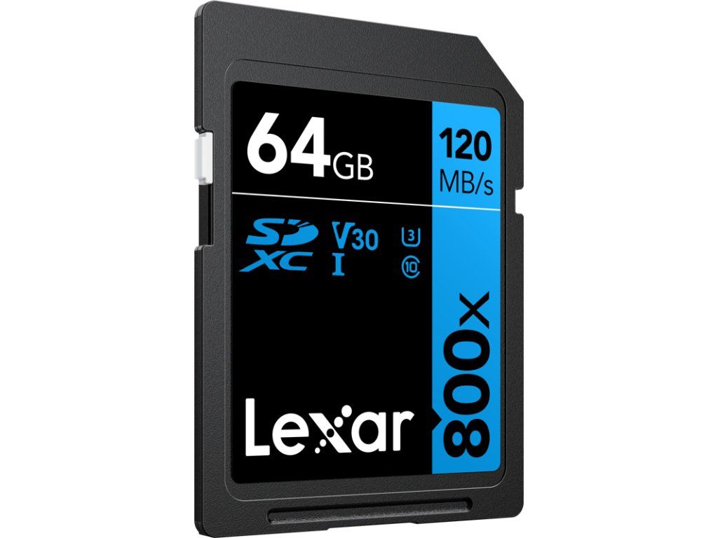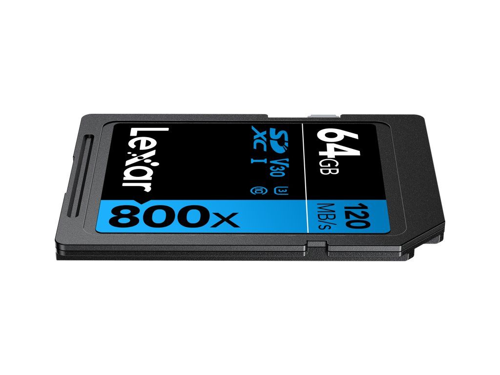 Lexar Professional 800x SDXC UHS-I cards, C10 V30 U3, R120 64GB