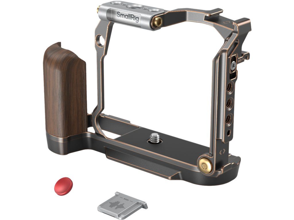Součástí klece je integrovaná ergonomická dřevěná rukojeť, která nejen dobře vypadá, ale především poskytuje jistý a pohodlný úchop při fotografování i natáčení. Díky promyšlenému tvaru máte kameru vždy bezpečně pod kontrolou. Konstrukce klece je navržena tak, aby nijak neomezovala přístup k ovládacím prvkům fotoaparátu. Bez problémů se dostanete ke všem tlačítkům, otočným voličům, displeji, paměťovým kartám i baterii. Nechybí ani výřez pro přepínač MCS.