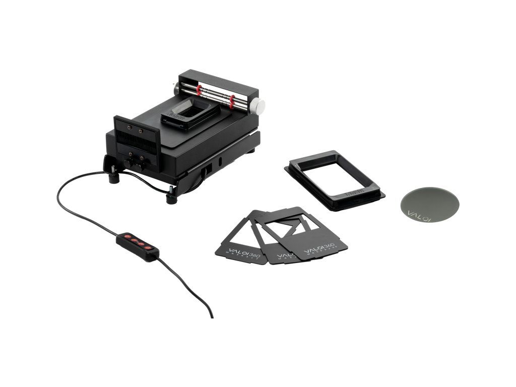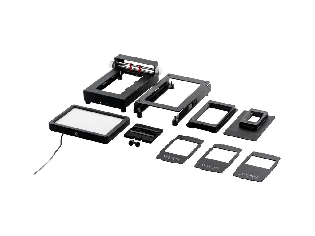 Další držáky, například držák pro snímání ozubených koleček na 35mm film, lze dokoupit samostatně.Sada obsahuje:AdvancerSada VALOI Advancer vám pomůže zlepšit rychlost, stabilitu, nivelaci, kvalitu světla a podporuje všechny držáky VALOI - umožní vám také používat další příslušenství, například VALOI Duster.LightAdapterTento adaptér VALOI LightAdapter je robustní platforma s prostorem pro zasunutí a následné přišroubování držáku Cinestill CS-LITE. Sešroubování světla s adaptérem LightAdapter a adaptéru LightAdapter s adaptérem Advancer umožňuje vytvořit mimořádně robustní sestavu. Na spodní straně adaptéru LightAdapter najdete nivelační gumové nožičky, které umožňují jemné nastavení nivelace a přilnavosti k povrchu. RCinestill CS-LITECinestill CS-LITE je cenově nejlepší zdroj světla pro skenování filmů na trhu. Nízká cena v kombinaci s vysokým CRI, vysokou intenzitou světla a třemi nastaveními optimalizovanými pro různé typy filmů představuje bezkonkurenční nabídku. A co je nejlepší: bez problémů se integruje se systémem VALOI 360.Filmové maskyTato sada, která obsahuje filmové masky 6x4,5, 6x6 a 6x7, vám poskytuje všechny možnosti při skenování filmů 120. Masky pomáhají redukovat dodatečné světlo při skenování formátů menších než 6x9 filmů v držáku 120. Zlepšuje se tak kontrast, což má u starších objektivů dramatický účinek.35mm držákDržák VALOI 35mm je vyroben pro standardní 35mm film s velikostí snímku přibližně 24x36 mm a maximálně se stará o rovinnost a kvalitu. Je kompatibilní s fotoaparátem Advancer, ale lze jej používat i samostatně.Držák na 120Držák VALOI 360 120 je vyroben pro standardní film 120 s velikostí snímku až 6x9, i když se dokonale hodí pro všechny menší formáty na filmu 120, a je maximálně plochý a kvalitní. Je kompatibilní se zařízením Advancer, ale lze jej používat i samostatně.DusterVALOI Duster je pravděpodobně nejoblíbenějším příslušenstvím pro systém VALOI 360. Má hliníkový rám, eloxovaný zcela černě s matným povrchem, který zajišťuje, že nedochází k žádným odleskům. V něm jsme usadili dva vysoce kvalitní kartáče s antistatickými štětinami, které mají extrémně jemný vlas, aby se zajistilo, že nepoškrábou film. Zde je získáte jako součást sady za skvělou cenu!Nivelační zrcátkoNivelační zrcátko je skromný doplněk vaší sady, ale možná největší možný, protože vám umožní přesně a rychle zajistit, aby byl film a snímač fotoaparátu rovnoběžný. To zajišťuje čtvercové snímky s rovnoměrným zaostřením po celé ploše obrazu a je pro dobrý výsledek rozhodující.Doplňkové parametry