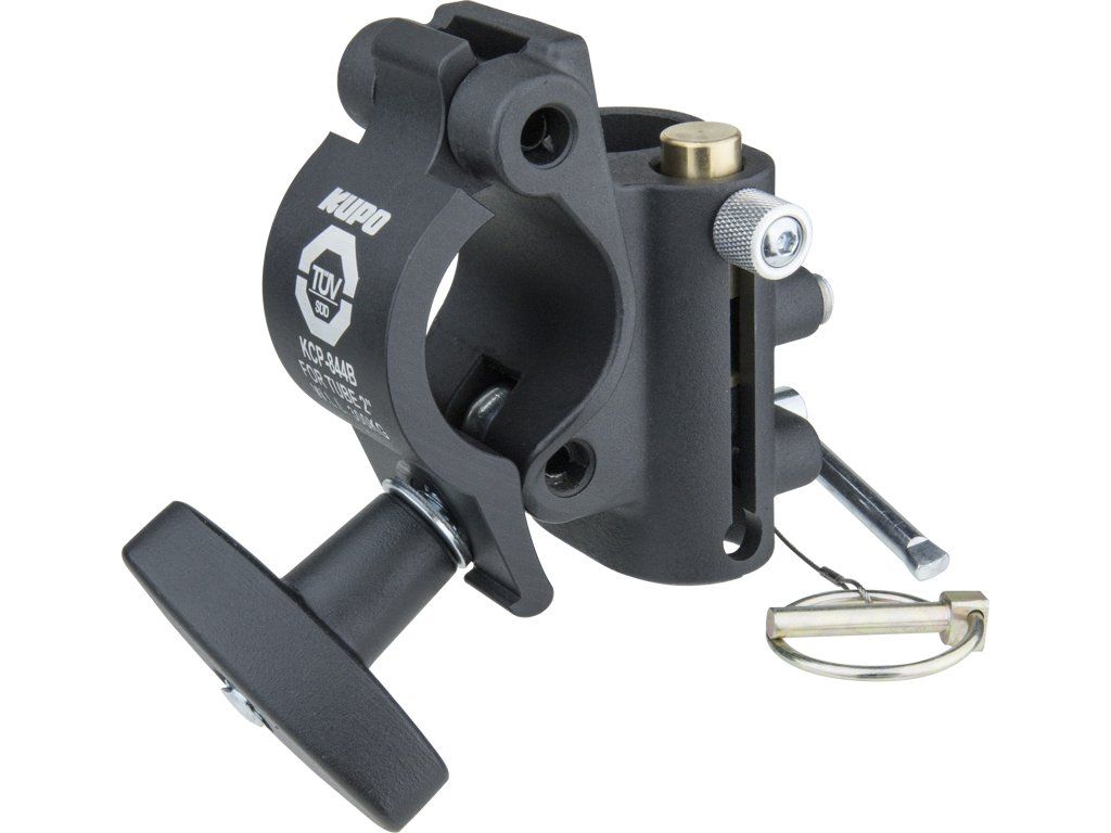 Dodává se se zdířkou „junior“ 28 mm pro osvětlení nebo teleskopické rameno. K dispozici je také čep „baby“ 3/8"-16 mm a lze jej použít k vystřídání zdířky „baby“ 16 mm u pružinové západky lehkého osvětlení a příslušenství.Pojistná čelist se závěsem je omezená, je tak snazší ovládání jednou rukou.Spojka je vybavená bezpečnostním závěsným kolíkem a bezpečnostní drát je do svorky vestavěný, aby se zajistilo, že toto nezbytné bezpečnostní opatření bude vždy při ruce. Nosnost spojky Kupo TV Coupler je až 300 kg na připevnění 28 mm a 40 kg na připevnění 16 mm.Vyrobena pro osvětlovací vybavení s velkým zatížením a dodává se s dutinkou 16 mm, stativovým čepem a dutinkou 28 mm Nosnost až 300 kg na připevnění 28 mm a 40 kg * na připevnění 16 mmVhodné pro trubky o průměru: 48–51 mmVybavená bezpečnostním závěsným kolíkem, bezpečnostním zařízením umožňujícím uživateli přednastavit jej do příslušného otvoru stativového čepu 28 mmKonstrukce z protlačovaného hliníku s vysokou pevností v tahuDoplňkové parametry