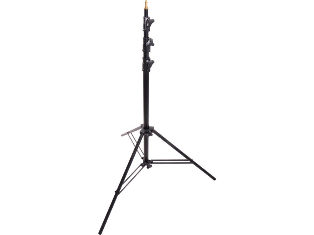 Není vybaven nýty, ale maticemi a šrouby a výsledkem je pevný stojan na světlo, který lze jednoduše ovládat i nastavit napnutí podle preferencí uživatele.Montážní čep je připevněn pomocí dvou křížových kolíků do pravého úhlu, aby se zabránilo jakémukoli pohybu.Tento stojan v provedení se 3 výsuvnými částmi a 4 sekcemi unese až 9 kg.Stojan je vybaven horním 5/8" čepem s 3/8"-16 závitem.Vzduchové polštáře pro bezpečnou a jemnou základnu pro vybavení při nastavování výškyCelokovové zamykací kroužky a hliníková konstrukceMax. výška: 3,85 m, nosnost: 9 kgDvojité rozpěrky nohou s dvojitým křížovým připevněním čepu kolíkuOmezená dvouletá zárukaDoplňkové parametry