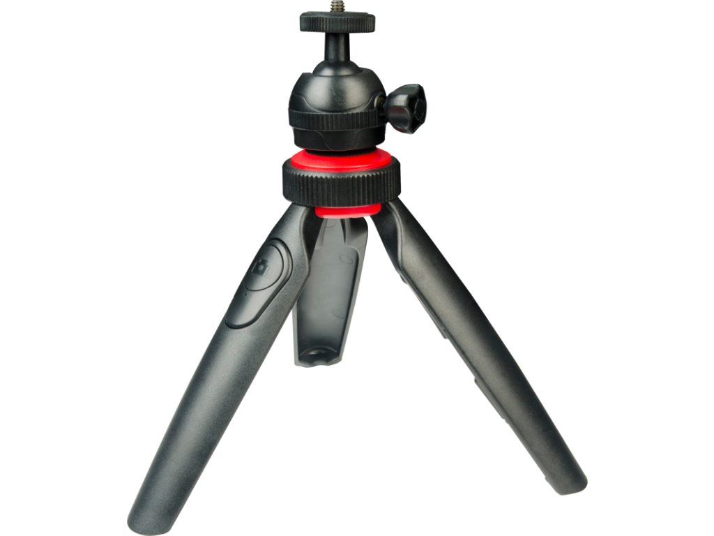 Pořizujte skvělé záběry pomocí tohoto aktivního ministativu. Je to kompaktní, univerzální stativ, který je vybavený snímatelným vestavěným dálkovým ovladačem závěrky a držákem na chytrý telefon nebo akční kameru. Bezdrátový ovladač závěrky se nachází uvnitř stativu a funguje na vzdálenost až 9 metrů. Uvnitř stativu lze nalézt také bajonet, který je kompatibilní se všemi fotoaparáty (bezzrcadlovými, DSLR) i akčními kamerami. Součást dodávky: dálkový ovladač Bluetooth, držák na akční kameru, držák na chytrý telefon, 360stupňová kulová hlava. Připevněte chytrý telefon a akční kameru najednou pomocí stejného adaptérového držáku. Stativ je vybaven univerzálním bajonetem, který lze použít pro jakýkoli fotoaparát DSLR nebo bezzrcadlový fotoaparát.Doplňkové parametry