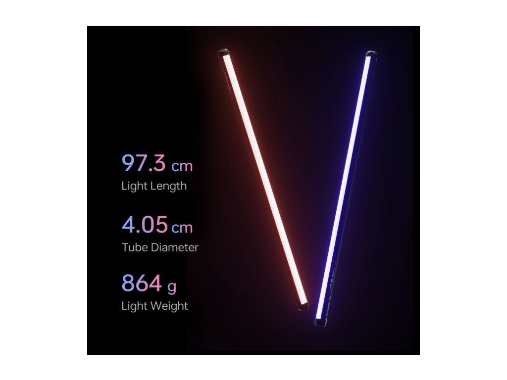 Duální sada světelných tyčí vám poskytuje dva plnohodnotné světelné zdroje, které výrazně zvyšují vaši kreativní flexibilitu. S hmotností pod 870 gramů a délkou do jednoho metru jsou tyče snadno přenosné a skladovatelné. 1/4" závity na obou koncích umožňují snadné připevnění na stativy a světelné stojany, zatímco magnetické úchyty poskytují rychlé a flexibilní umístění na kovových površích.