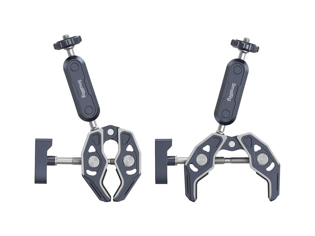 SmallRig 5529  Svorka ve tvaru kraba s ramenem Ballhead Magic ArmSvorka podporuje tyče od Φ14 mm do Φ60 mm a povrchy o tloušťce až 65 mm, což umožňuje rychlou montáž kamer, monitorů, LED videosvětel a dalších zařízení na tyče, stoly, nohy stativů a kroužky ručních stabilizátorů. Vestavěné podložky zvyšují ochranu a stabilitu upnutí.Kouzelné rameno kulové hlavy, připevněné k objímce pomocí stavěcího šroubu, je vybaveno dvěma nastavitelnými kulovými hlavami a objímkou ve tvaru kulové hlavy. Kouzelné hlavy nastavitelné o 360 stupňů jsou vybaveny protiskluzovým vroubkováním pro snadné utažení, zatímco kloub mezi kouzelným ramenem kulové hlavy a objímkou ve tvaru kraba využívá konstrukci proti zkroucení, která zabraňuje uvolnění. Šestihranný otvor ve spodní části navíc umožňuje lepší upevnění pomocí imbusového klíče a šroub 1/4"-20 na horní straně usnadňuje upevnění akčních kamer, monitorů, LED videosvětel, mikrofonů a dalších zařízení.Kompatibilita:Rozsah tyčí od Φ14 mm do Φ60 mmPovrch do tloušťky 65 mmBalení obsahuje:Svorka ve tvaru krabaKouzelné rameno s kulovou hlavouDržák na akční kameru.Doplňkové parametry