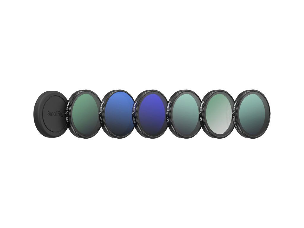 Sada filtrů SmallRig 5967 pro DJI Osmo Action 6Balení obsahuje filtr ND8, filtr ND16, filtr ND32, filtr CPL, filtr UV, filtr 1/4 efekt černé mlhy, silikonový kryt objektivu a čisticí hadřík. Sada ND filtrů zajišťuje ideální redukci světla v různých prostředích a zároveň obohacuje vaše záběry o živé barvy. CPL filtr účinně eliminuje nežádoucí odrazy z nekovových povrchů, jako je voda a sklo, a zároveň zlepšuje viditelnost pod vodou a přes okna. UV filtr chrání objektiv před poškrábáním a nárazy, zatímco filtr 1/4 black mist zjemňuje jasné oblasti a vytváří snový, filmový efekt. Rychlé zacvakávací provedení umožňuje přímé připojení bez nutnosti sejmutí objektivu, což výrazně zvyšuje efektivitu fotografování.Pro větší ochranu chrání přiložený silikonový kryt objektivu objektiv fotoaparátu před poškrábáním, když jej nepoužíváte.Kompatibilita:DJI Osmo Action 6Balení obsahuje:ND8 filtrFiltr ND16ND32 filtrFiltr CPL1/4 efektový filtr Black MistUV filtrČisticí hadříkSilikonový kryt objektivuDoplňkové parametry