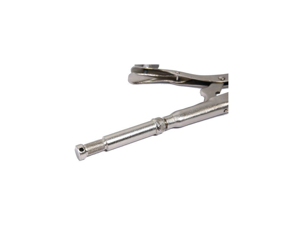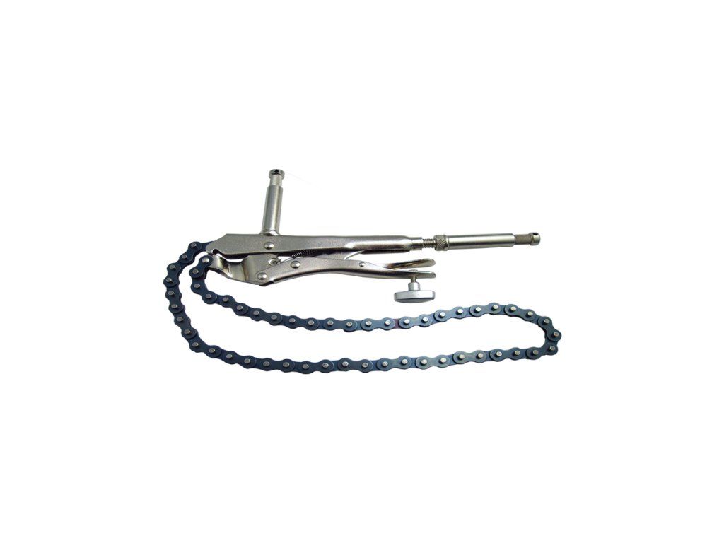 Tato svorka je vybavena dvěma čepy „baby“ 5/8" (16 mm). Jeden je namontovaný na zadní straně svorky a druhý v pravém úhlu na konci kliky, která se používá k nastavování tlaku při zajišťování.Čepy mají rýhovanou texturu, která zabraňuje instalacím, aby se při zajištění na místě protáčely. Uvolňovací páčka má stavěcí šroub s knoflíkem, která zabraňuje náhodnému otevření svorky při zajištění na místě.25cm řetěz lze omotat kolem předmětů s nepravidelným tvarem, jako jsou například větve stromu – svorka je tak ideální pro předměty s neobvyklým tvaremDva kolíky „baby“ 5/8" poskytují pevné zajištění instalací světel v opačných směrechVysoce kvalitní tepelně zpracovaná hliníková slitina pro maximální pevnost a odolnostKnoflík stavěcího šroubu uvolňovací páčky zabraňuje náhodnému otevření svorky při zajištění na místěReliéfní krok čepu „baby“ 5/8" nabízí maximální tření při upevnění instalací světelDoplňkové parametry