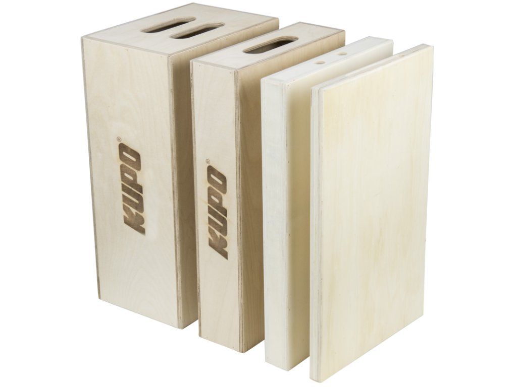 Hokry Kupo Apple box jsou vyrobeny z vysoce kvalitní břízové překližky, která je určena pro dlouhodobé používání Tato sada obsahuje po jednom kusu v každé velikosti: palačinkové velikosti 50 × 30 × 2,5 cm, čtvrtinové velikosti 50 × 30 × 5 cm, poloviční velikosti 50 × 30 × 10 cm a plné velikosti 50 × 30 × 20 cm s neutrální barvou dřeva v hladké povrchové úpravě. Jednotlivé hokry mají ergonomické rukojeti a úchyty se zaoblenými okraji pro snadnou manipulaci. Tři větší velikosti hokrů jsou k zajištění mimořádné pevnosti a stability rozměrů vybaveny interními výztužemi.Sada obsahuje po jednom kusu v každé velikosti: palačinkové velikosti 50 × 30 × 2,5 cm, čtvrtinové velikosti 50 × 30 × 5 cm, poloviční velikosti 50 × 30 × 10 cm a plné velikosti 50 × 30 × * 20 cmVyrobena z vysoce kvalitní břízové překližky, která je určena pro dlouhodobé používáníTři větší velikosti hokrů jsou k zajištění mimořádné pevnosti vybaveny interními výztužemiZaoblené okraje pro snadnou manipulaciLze na scéně využít k různým účelům, jako je vyvýšení nábytku a stojanů na světla, vyrovnání kolejnic kamerového vozíku, přizvednutí herců, jako dočasná sedadla atd.Doplňkové parametry