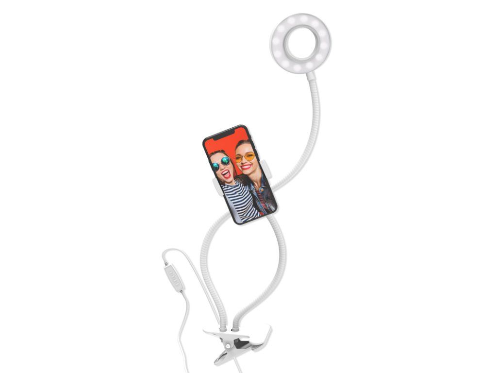 Kruhové světlo o úhlopříčce 3" je vybaveno 3 nastavitelnými barevnými teplotami a možností nastavení 10 úrovní jasu , které vám pomohou najít perfektní osvětlení pro každou situaci. 360° otočný držák pro smartphone , který vám umožní vybrat si perfektní úhel záběru. Světlo je napájeno z USB po připojení k powerbance, síťové nabíječce nebo přímo z počítače. Ultra silná svorka se bezpečně připevní k nábytku, jako jsou pracovní stoly, konferenční stolky atd.Kruhové světlo z této sady je také kompatibilní se všemi typy smartphonů . Smartphone není potřeba vyjímat z pouzdra, tudíž je jeho použití i nastavení aplikace opravdu jednoduché. Hlavní vlastnosti: -3 režimy barevné teploty – studená, neutrální, teplá-10 režimů intenzity výkonu světla-Dálkový ovladač pro iOS a Android-USB napájení – například z powerbanky, síťové nabíječky pro smartphone, přímo z počítače atd.Doplňkové parametry