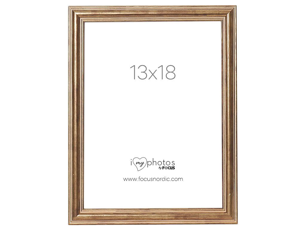 Bronzový a dřevený obrouček s klasickým a profilovaným stylem. Rámeček se dodává se skutečným sklem, které na fotografiích zvýrazní to nejlepší. Se stojánkem vzadu, který umožňuje umístit rámeček na polici nebo stůl. Profil rámečku má hloubku 14 mm a šířku 19 mm. Velikost obrázku v rámečku je 13x18 cm.Výběr správného rámečku dodá vašim obrázkům další rozměr. Rámečky Focus vylepší obsah, ať již rámujete pěkný plakát nebo vytváříte stěnu s fotografiemi z dovolené. Proto jsme na naši širokou řadu rámečků hrdí. Máme něco pro každého – ať se vám líbí klasické rámečky, nebo ať chcete rámeček, díky kterému váš snímek vynikne a dodá vašemu interiéru další rozměr.Doplňkové parametry