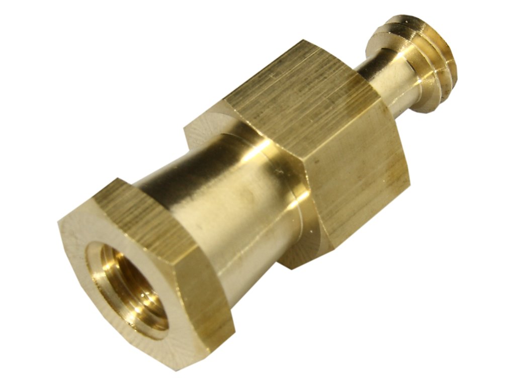 Hexagonální adaptér je vyroben z pevné mosazi s hexagonálním adaptérem 5/8" se závitem samice 3/8"-16 a závitem samec 1/4"-20. Provedení s hexagonálním koncem zabraňuje neočekávané rotaci.