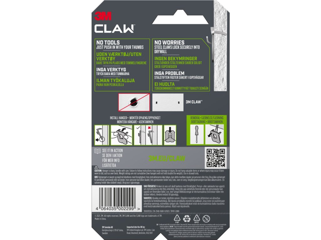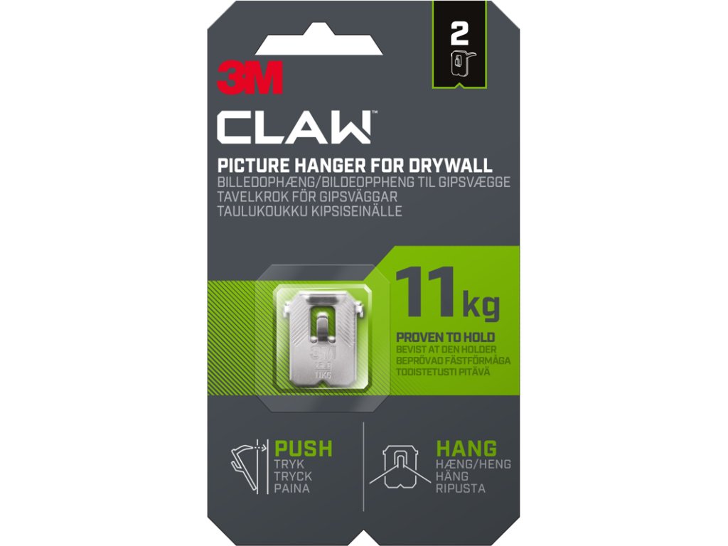 3M Claw Hook for drywall, hold 11 kg, 2 hooks
