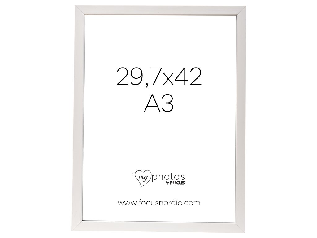 Bílý a dřevený obrouček s klasickým stylem. Obrouček má tenký profil. Rámeček se dodává se skutečným sklem, které na fotografiích zvýrazní to nejlepší. Profil rámečku má hloubku 13 mm a šířku 11 mm. Velikost obrázku v rámečku je 29,7x42 (A3) cm. Výběr správného rámečku dodá vašim obrázkům další rozměr. Rámečky Focus vylepší obsah, ať již rámujete pěkný plakát nebo vytváříte stěnu s fotografiemi z dovolené. Proto jsme na naši širokou řadu rámečků hrdí. Máme něco pro každého – ať se vám líbí klasické rámečky, nebo ať chcete rámeček, díky kterému váš snímek vynikne a dodá vašemu interiéru další rozměr.