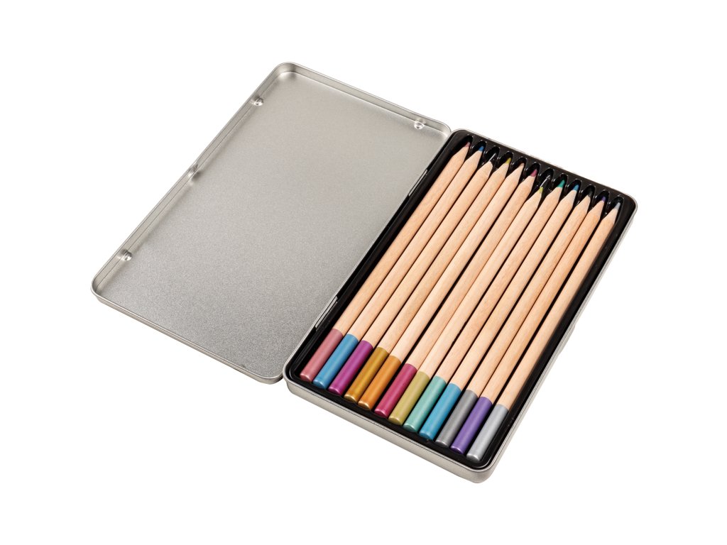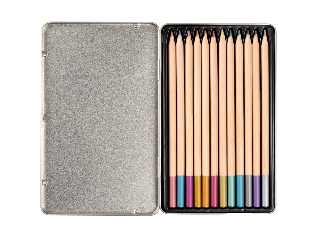 Dřevěné pastelky v kovové krabičce. 12 kusů nelámavých dřevěných pastelek v klasickém šestiúhelníkovém tvaru pro neomezenou kreativitu. Intenzivní barvy, vhodné pro světlé, barevné i tmavé papíry. 12 pastelek v různých barvách zabalených v praktické kovové krabičce, lesklé metalické provedení. Balení: 12 kusů v kovové krabičceDoplňkové parametry
