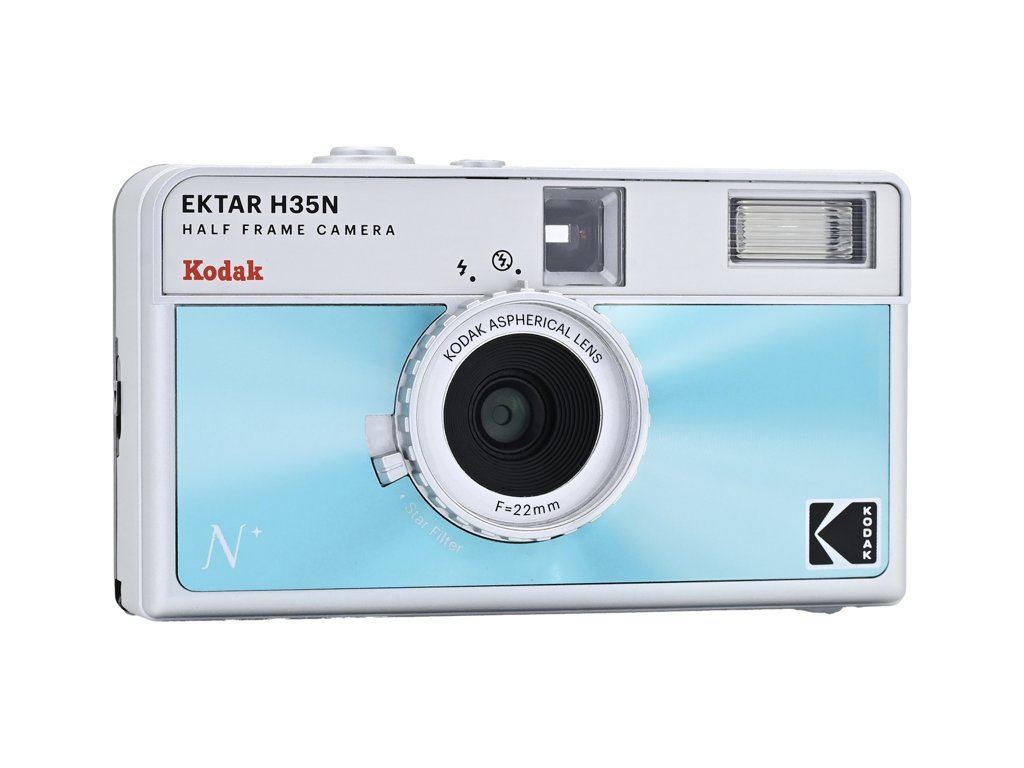 Nový, vylepšený fotoaparát H35N je vybaven několika zajímavými funkcemi, jako je vestavěný hvězdný filtr, bulbová závěrka, otvor pro stativ a částečně skleněný objektiv s povrchovou úpravou.Poloviční snímek znamená, že každá expozice má poloviční velikost oproti standardnímu snímku, což má za následek menší velikost snímku, což znamená, že na 36 svitcích získáte 72 snímků a na 24 svitcích 48 snímků. Při pohledu do hledáčku vidíte svislý obraz namísto vodorovného, jak je tomu běžně.U nového fotoaparátu Kodak vylepšil optickou čočku a jeden prvek akrylátových čoček nahradil skleněnou čočkou, která pomáhá zlepšit ostrost obrazu. Fotoaparát je také vybaven vestavěným hvězdicovým filtrem, který vytváří na světelných místech čtyřpaprskové odlesky.Fotoaparát H35N je vybaven žárovkovou závěrkou a kabelovou spouští, což umožňuje přesnou kontrolu nad délkou expozice, zachycení pohybových stop a snadnější použití za špatných světelných podmínek. Kromě toho byla do základny fotoaparátu zabudována zásuvka pro stativ.Fotoaparát je k dispozici v šesti stylových vzhledech: pruhovaný černý, pruhovaný stříbrný, pruhovaný zelený, prosklený modrý, prosklený oranžový a prosklený růžový. Klíčové specifikace Vylepšená optika Vestavěný hvězdný filtr Funkce žárovky Zdokonalený hledáček a knoflík pro přetáčení obrazu Stativ K dispozici v šesti stylových vzhledech BleskDoplňkové parametry