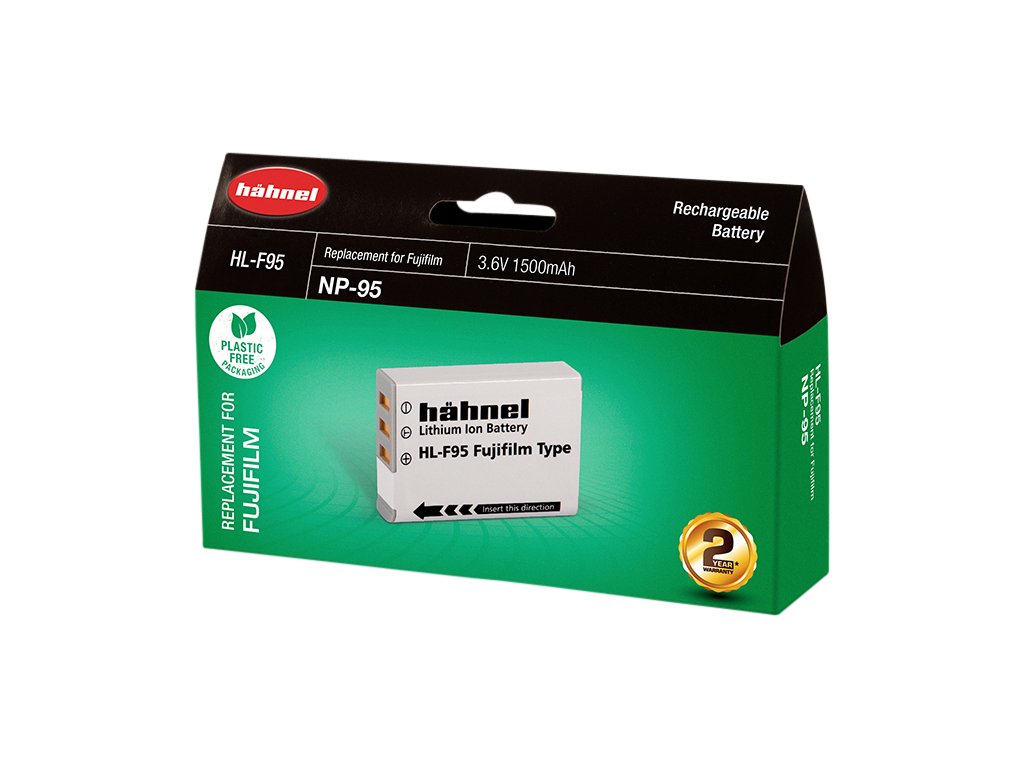 Hähnel HL-F95 je alternativní baterie k originální baterii Fujifilm NP-95. Baterie je vyrobena z vysoce kvalitních článků a disponuje ochranným obvodem proti přetížení a zkratu.Součástí balení je také kryt baterie. Technické specifikace: Typ baterie: Li-Ion Napětí: 3.6V Kapacita: 1500mAh Kapacita (Wh): 5.4WhDoplňkové parametry