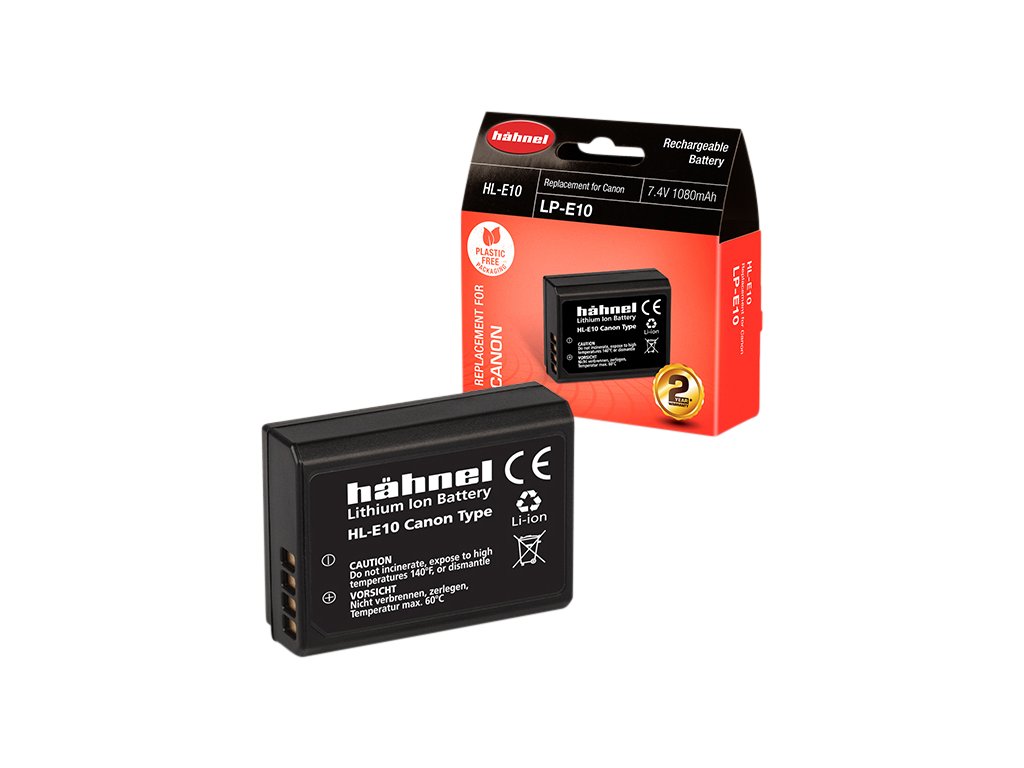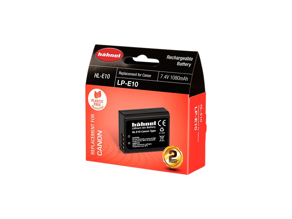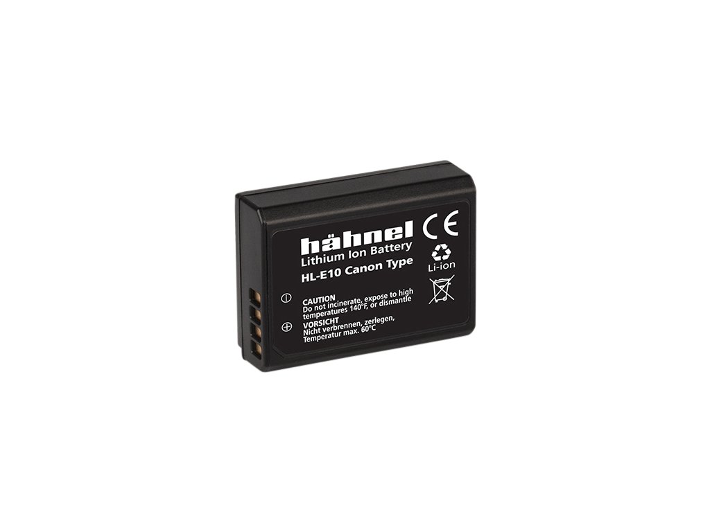 Baterie Hähnel Canon HL-E10 / LP-E10 Baterie je vyrobena z vysoce kvalitních článků a disponuje ochranným obvodem proti přetížení a zkratu. Technické specifikace: Typ baterie: Li-Ion Napětí: 7.4V Kapacita: 1080mAh Kapacita (Wh): 8WhDoplňkové parametry