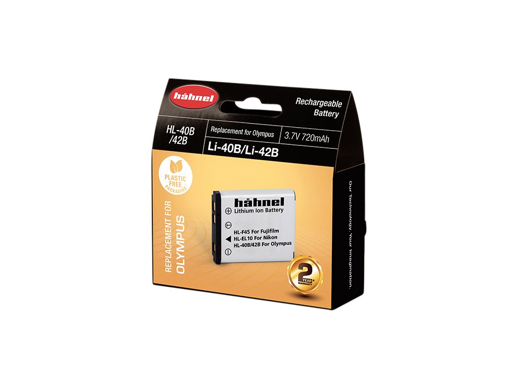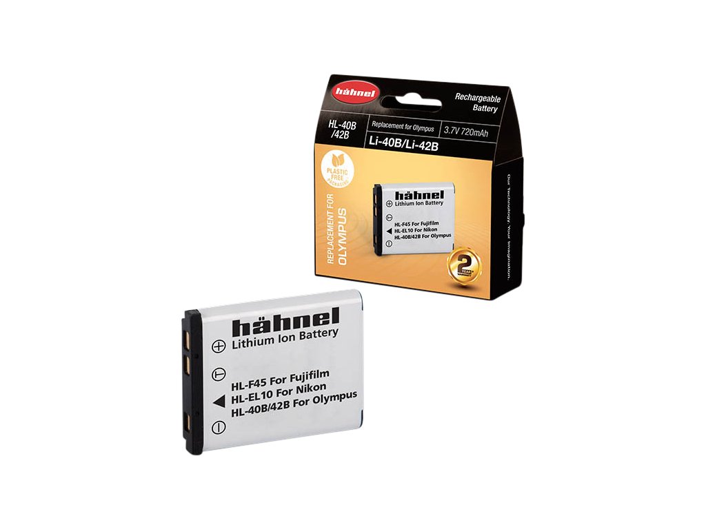 Hähnel HL-40B/42B je alternativní baterie k originální baterii Olympus Li-40B/42B. Baterie je vyrobena z vysoce kvalitních článků a disponuje ochranným obvodem proti přetížení a zkratu.