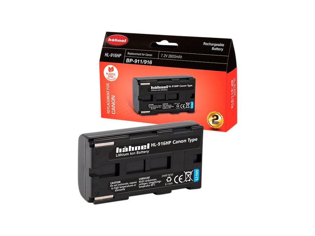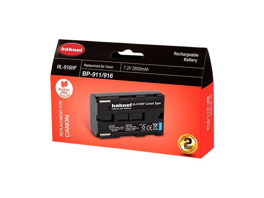 Hähnel HL-916HP je alternativní baterie k originální baterii Canon BP-911/916. Baterie je vyrobena z vysoce kvalitních článků a disponuje ochranným obvodem proti přetížení a zkratu.Součástí balení je také kryt baterie. Technické specifikace: Typ baterie: Li-Ion Napětí: 7.2V Kapacita: 2600mAh Kapacita (Wh): 18.7WhDoplňkové parametry