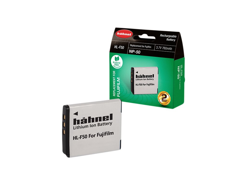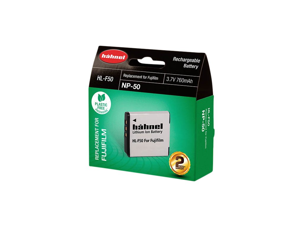 Hähnel HL-F50 je alternativní baterie k originální baterii Fujifilm NP-50. Baterie je vyrobena z vysoce kvalitních článků a disponuje ochranným obvodem proti přetížení a zkratu.Součástí balení je také kryt baterie. Technické specifikace: Typ baterie: Li-Ion Napětí: 3.7V Kapacita: 760mAh Kapacita (Wh): 2.8Wh