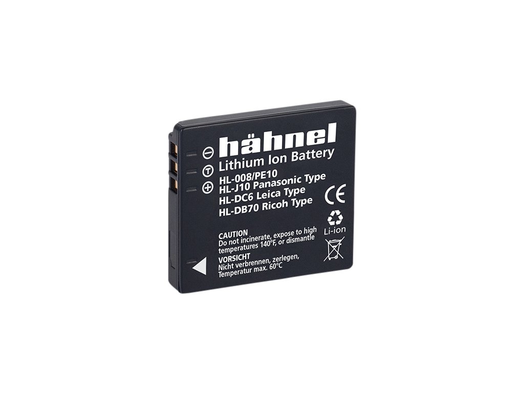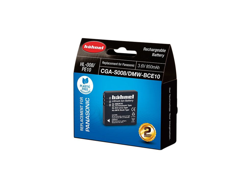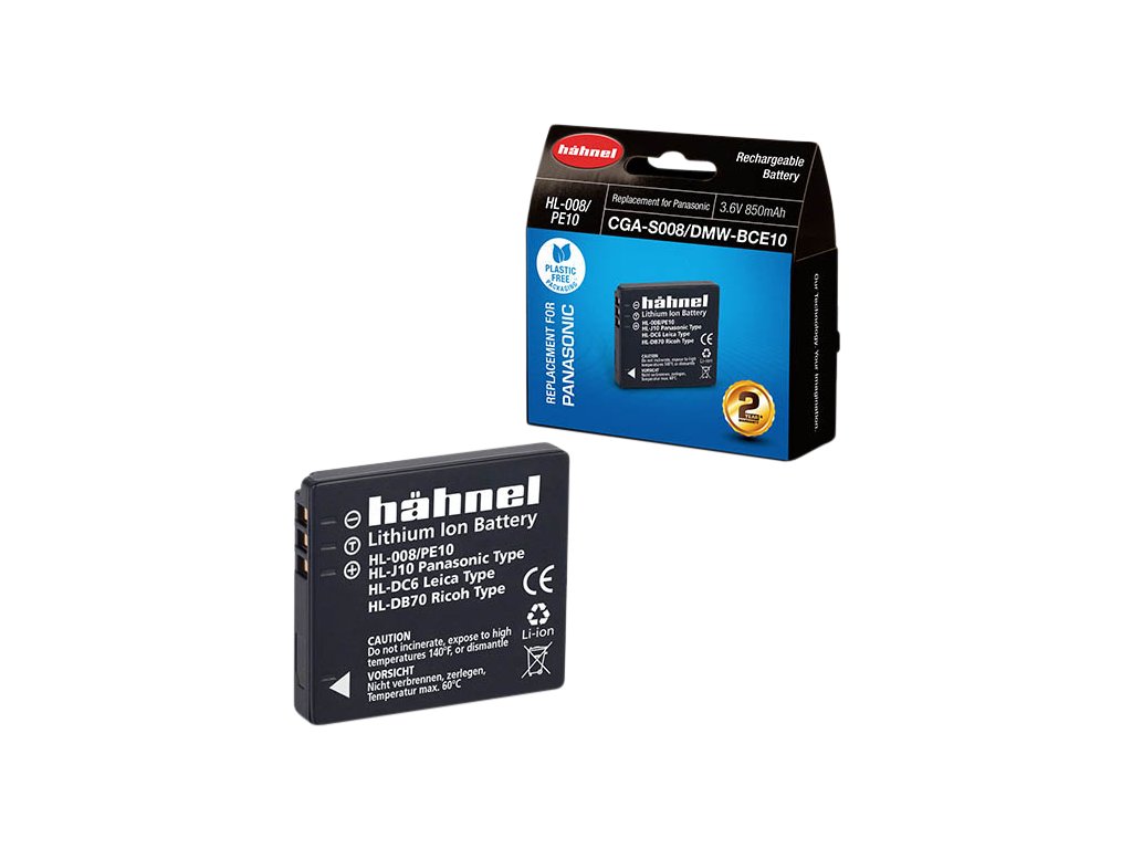 Hähnel HL-008/PE10 je alternativní baterie k originální baterii Panasonic CGA-S008/DMW-BCE10. Baterie je vyrobena z vysoce kvalitních článků a disponuje ochranným obvodem proti přetížení a zkratu.Součástí balení je také kryt baterie. Technické specifikace: Typ baterie: Li-Ion Napětí: 3.6V Kapacita: 850mAh Kapacita (Wh): 3.1WhDoplňkové parametry