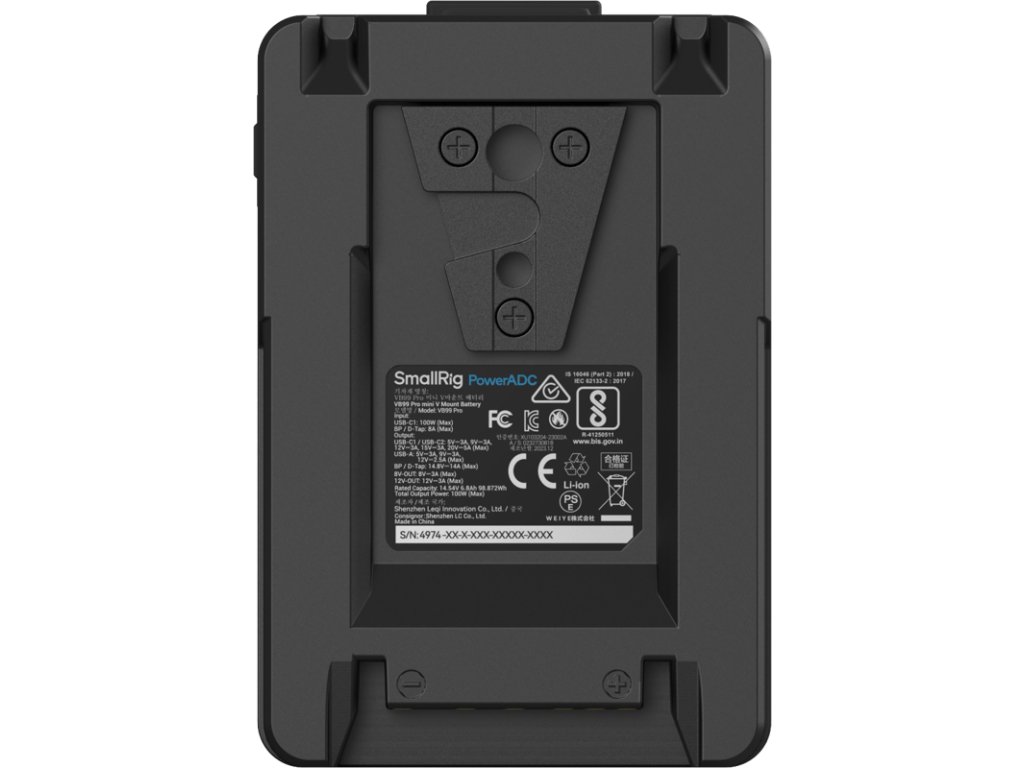 Baterie SmallRig 4974 VB99 Pro mini V Mount GreenVysoce integrovaný čip BMS podporuje širokou škálu běžných protokolů rychlého nabíjení (PD / QC / PPS atd.), obousměrné nabíjení 100 W (max.).USB-C PD rychlé nabíjení, adaptivní zvyšování napětí / adaptivní regulaci proudu atd!Jeho přizpůsobený inteligentní systém BMS navíc zajišťuje rychlejší a bezpečnější nabíjení tím, že poskytuje několik ochran proti nadproudu / zkratu / přehřátí / přepětí atd.Součástí jsou také taková rozhraní, jako je D-tap / USB-C / USB-A / 8V-OUT / 12V-OUT / BP elektroda pro efektivní nabíjení/napájení fotoaparátu/kamery/monitoru / bezdrátového video vysílače / LED video světla / mobilního telefonu/notebooku atd. bez použití V-mount desky pro konverzi!Čip BMS je vybaven 16bitovým algoritmem pro měření spotřeby, spolu s MCU a digitálním TFT displejem, abyste měli neustále přehled o stavu baterie.Vestavěná prémiová vysoce výkonná baterie (bez nafouknuté kapacity), která je dobíjecí a stabilní a splňuje normy MSDS / UN38.3 / IEC62133 / UL2054 / UL62368 a další mezinárodně uznávané normy.Její plášť je vyroben z robustní hliníkové slitiny odolné proti pádu a ohnivzdorného PC a na přední straně je vybaven odolným PC a akrylovým krytem odolným proti poškrábání, přičemž barevný TFT displej jasně a přesně zobrazuje stav baterie.Celkově je tato položka dostatečně bezpečná a výkonná, abyste mohli zachytit každý okamžik bez zátěže!Kompatibilita:MILC, videokamera, fotoaparát, monitor, follow focus, vysílač obrazu, LED video světlo, mobilní telefon, tablet, notebook atd.Údaje:**Kapacita: 14,54 V 6,8 Ah 98,872 WhJmenovitý výkon: 100 WVstup BP / D-odbočka: * Vstupní napětí: 100 W: 8A (max.)Výstup BP / D-odbočka: max: 14,8 V / 14 A (max.).Výstup USB-A QC2.0 / QC3.0: 5V / 3A, 9V / 3A, 12V / 2,5A(Max.).Vstup / výstup USB-C1Vstup / výstup: 100W (max.)PD3.0 / QC2.0 / QC3.0 / PPS: 5V / 3A, 9V / 3A, 12V / 3A, 15V / 3A, 20V / 5A (max.)Výstup USB-C2Výstup: 100W (max.)PD3.0 / QC2.0 / QC3.0 / PPS: 5V / 3A, 9V / 3A, 12V / 3A, 15V / 3A, 20V / 5A (Max.)8V-OUT: 8V / 3A (max.)12V-OUT: 12V / 3A (max.)Vypínací napětí: 11VBP nabíječka, nabíječka 16,8V D-TAP, nabíječka USB-C, například nabíječka GaN s technologií rychlého nabíjení PD až 100W.Balení obsahuje:Baterie VB99 Pro mini V Mount240W nabíjecí kabel USB-CUživatelská příručkaDoplňkové parametry