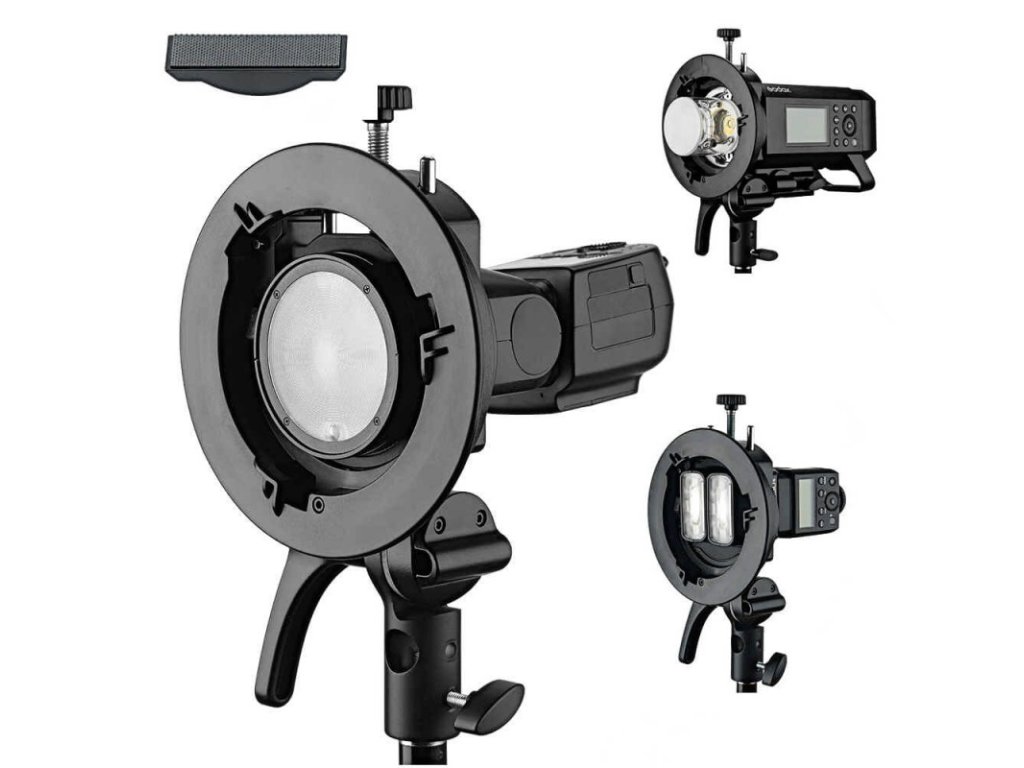 • Široká kompatibilita s blesky s kulatou hlavou (např. V100, V1, V1Pro), s hranatou hlavou (V860II/III, V480, TT685II, TT350), s menšími externími blesky (AD100/100II, AD200Pro/200Pro II, AD300/300II) i s kompaktními LED světly (ML60 ap.)