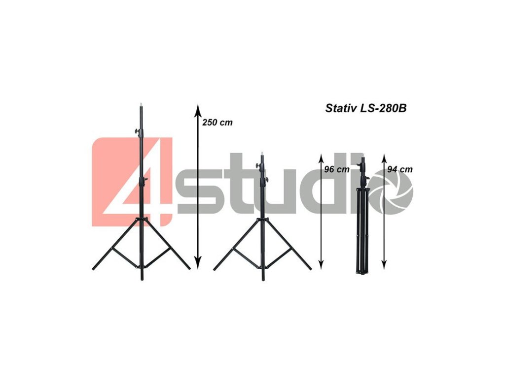 Masivní kovový stativ určený pro studia i exteriéry. S váhou 2,6kg a maximální výškou 2,5m se řadí ještě do kategorie mobilních stativů.