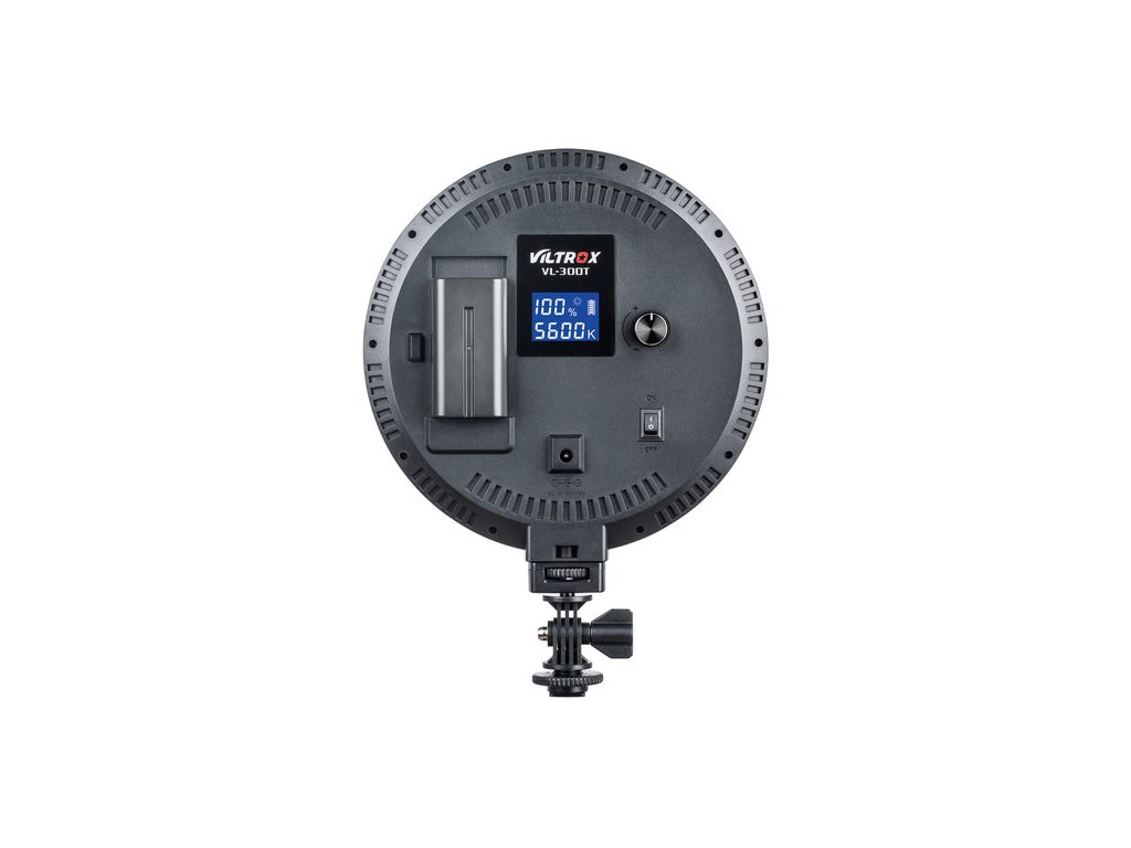 VL-300T je vybaven vestavěnou bateriovou deskou řady L a může být také napájen samostatně dostupným AC adaptérem. Světlo vydrží při plném jasu cca 1,2 hodiny (s baterií NP-750). Jasný, snadno čitelný LCD displej na zadní straně zobrazuje stav baterie, procento jasu a teplotu barev.
