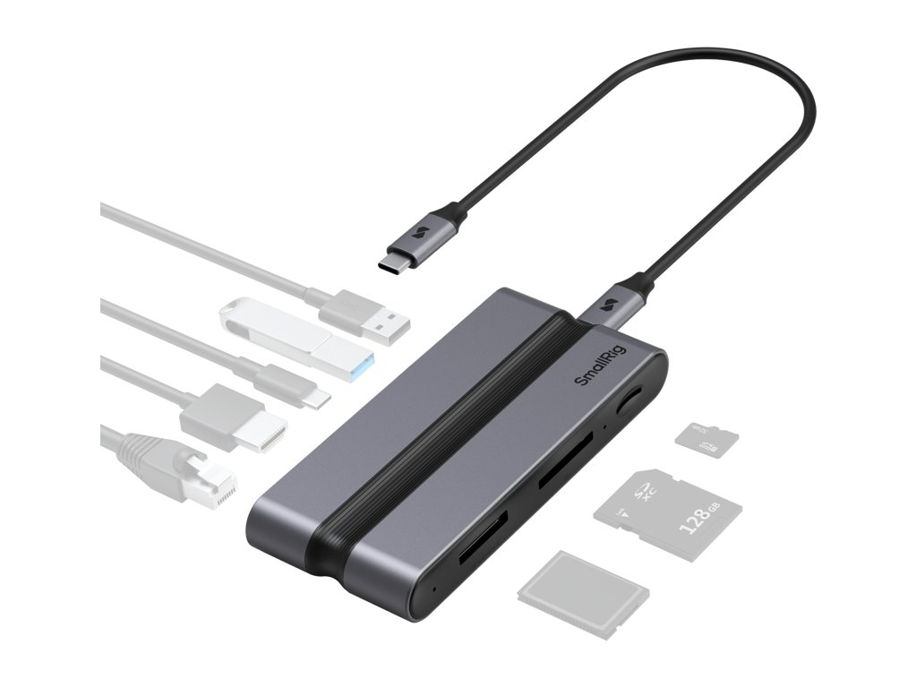 SmallRig 4663 CFexpress (typ A) Dokovací stanice pro CreatorsTato profesionální dokovací stanice 9 v 1 je vybavena jedním 10Gb/s slotem CFexpress typu A, jedním slotem UHS-II SD 4.0 a microSD 4.0, jedním 10Gb/s datovým portem USB-C, dvěma 5Gb/s datovými porty USB-A, jedním portem HDMI 4K@30Hz, jedním portem Gigabit Ethernet a jedním 100W portem PD-IN.Umožňuje snadný přístup k souborům a multiportové funkce, čímž zefektivňuje práci i zábavu.Součástí je 50cm dvouhlavý vysokorychlostní kabel USB-C, který podporuje přenos dat rychlostí 10 Gb/s pro zvýšení efektivity práce.Nezávislá dokovací stanice pojme kabely různých délek, což podporuje pořádek na pracovišti.Bionická struktura připomínající žebra navíc zajišťuje účinný odvod tepla pro bezpečné používání.Tato kompaktní a přenosná dokovací stanice je ideální pro efektivní digitální životní styl.Technické informace:Vstupní rozhraní: Port USB-C, celková šířka pásma 10 Gb/sSpecifikace USB-C: 10Gb/s USB-CSpecifikace USB-A: 5Gb/s USB-A x 2Nabíjení PD: Až 100W PD-INSloty pro karty CFexpress typu A: Až 1000 MB/sSloty pro karty SD / TF (Micro SD): 1000 MB/s, 1000 MB/s, 1000 MB/s, 1000 MB/s, 1000 MB/s, 1000 MB/s:Až 312 MB/sPodporuje standardní paměťové karty SD / SDHC / SDXC, Micro SD / Micro SDXC / Micro SDHCPodporuje standardy USH-I a USH-IIHDMI: až 4K@30HzEthernet: Gigabitový ethernetový portRozsah provozních teplot: -10 °C až 50 °CSkladovací prostředí: -20°C až 65°CBalení obsahuje:Dokovací stanice 9 v 1 (A)Kabel 20G 0,5 mDoplňkové parametry
