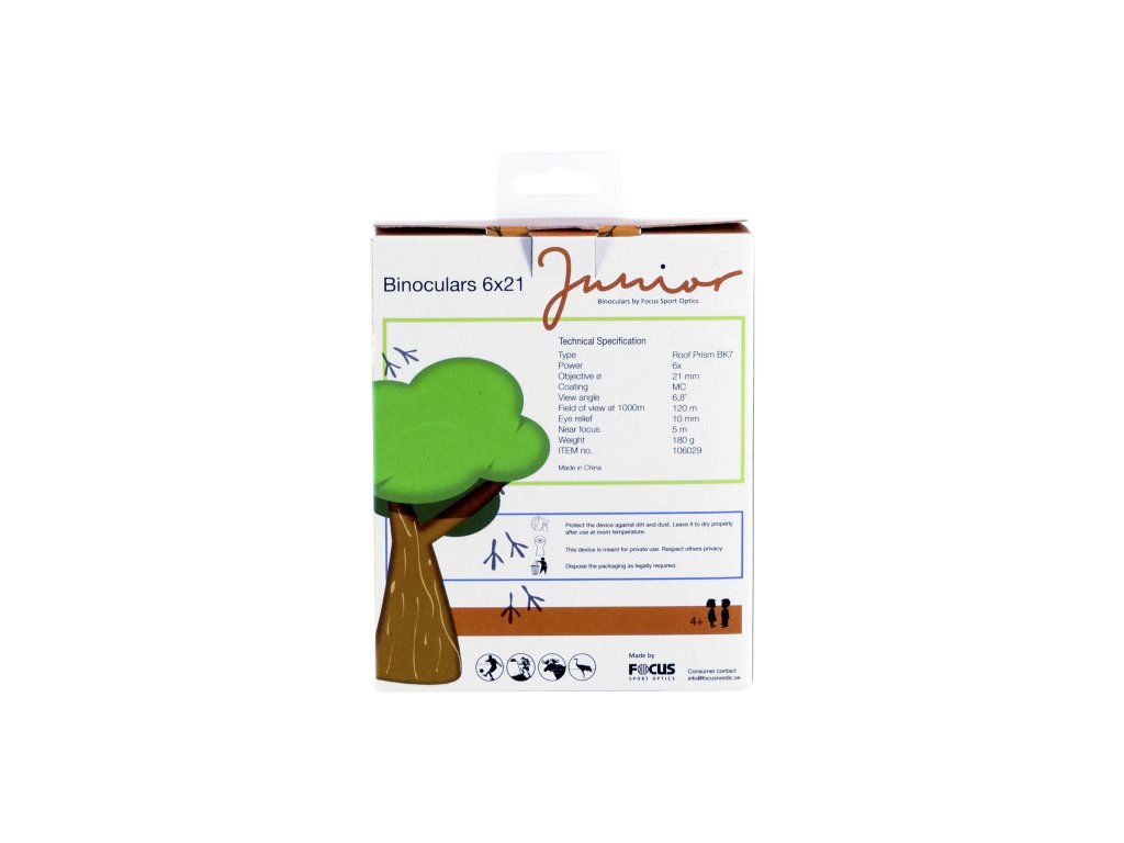 Focus Junior 6x21 je perfektní binokulární dalekohled, který nesmí chybět ve výbavě žádného malého pozorovatele. Výběr ze dvou barevných provedení ocení nejen chlapci, ale také dobrodružné dívky.Tento malý kapesní dalekohled je určen pro děti s rozpětím očí mezi 50 63 mm. Speciální konstrukce s jedním centrálním kloubem zajistí ideální stabilitu.Velké zaostřovací kolečko usnadňuje úpravu ostrosti a povrchová úprava optiky poskytuje jasný obraz.Kaučukové tělo je odolné proti nárazům a zároveň zajišťuje bezpečné a příjemné uchopení. Díky tomu se vyhnete nechtěným pádům z důvodu nepříjemného držení, což každý rodič ocení. Díky 6násobnému zvětšení dopřejete svým dětem možnost rychleji a snadněji spatřit ptáky nebo jiná zvířata, které děti jednoduše milují.Balení také obsahuje pouzdro na opasek, popruh na krk a čistící hadřík na optiku.Švédská značka Focus Sport Optics vyrábí optiku od roku 1985. Její produkty jsou ve Skandinávských zemích, kde je příroda nekompromisní, oblíbené díky skvělému poměru ceny a výkonu. Na produkty poskytuje také rozšířenou 5letou záruku.Doplňkové parametry