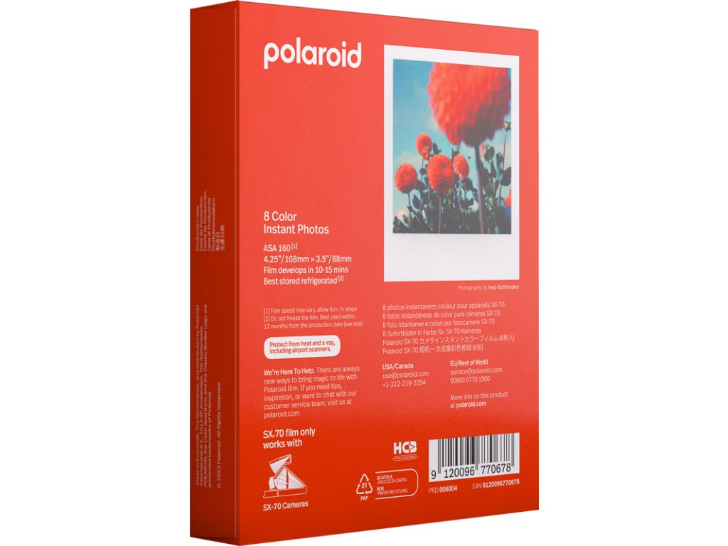 Fotografie se začne objevovat během 2 minut. Celý vývoj trvá asi 10-15 minut. Film SX-70 má nižší ISO než naše ostatní filmy, což je ideální pro zachycení jemných detailů za dobrých světelných podmínek. Tento film dělá fotky s bohatou barvou, vyváženými tóny, výraznou analogovou strukturou a je oblíben umělci i profesionálními fotografy. Je to skvělá volba pro každého, kdo chce posouvat své hranice ve světě fotografie.Doplňkové parametry