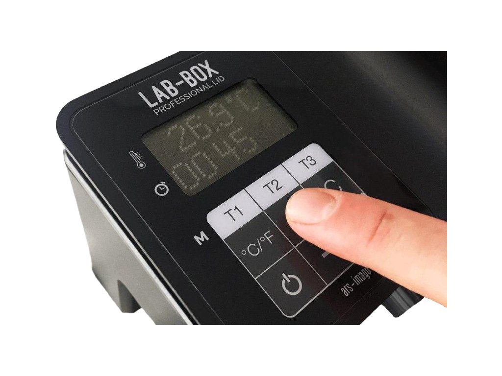 Víko je vybaveno sondou z nerezové oceli, která během procesu snímá teplotu kapalin v nádrži a pomáhá ji tak kontrolovat během procesu vyvolávání.Zvláště užitečné pro vyvolávání barevných negativů procesem C-41, který vyžaduje pečlivé řízení teploty.Vzhledem k tomu, že chemikálie lze do nádržky nalít ještě před vložením filmu do kotouče s LAB-BOXem, může vám profesionální víko pomoci přesně odečíst teplotu kapalin v nádržce před zahájením celého vyvolávacího procesu.Víko Professional má také vestavěný časovač se 3 nastavitelnými časovými předvolbami, které lze spravovat pomocí tlačítek T1, T2, T3.ČASOVAČVestavěný časovač umožňuje přesně sledovat všechny fáze vyvolávání, aniž byste potřebovali externí zařízení.Navíc si můžete uložit až 3 časové předvolby díky tlačítkům T1, T2, T3.REGULACE TEPLOTYVíko je vybaveno sondou z nerezové oceli, která dokáže během procesu snímat teplotu kapalin v nádrži, aby vám ji pomohla kontrolovat během procesu vyvolávání.Vestavěný teploměr je užitečný zejména při vyvolávání barevných negativů procesem C-41, který vyžaduje pečlivou regulaci teploty.NALÉVÁNÍ CHEMIKÁLIÍKonstrukce víka byla vylepšena: jeho přední část byla zvětšena, aby bylo možné snadněji nalévat a vylévat chemikálie.PROCES VYVOLÁVÁNÍ BAREV C-41LAB-BOX + víko Professional je nejlepší volbou pro vyvolávání barevných filmů pomocí naší sady ars-imago 41 nebo jiných sad pro domácí vyvolávání C-41.Doplňkové parametry