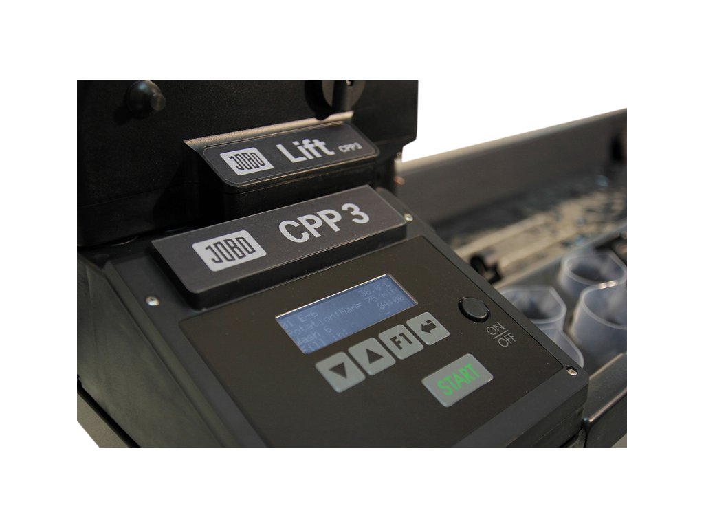 Se zpracovateli JOBO pracují umělecké a fotografické fakulty z Číny, celé Evropy a USA. JOBO CPP-3 je volbou profesionálů. Ideální pro zpracování velkoformátových filmů s bubnem JOBO Expert.Obsahuje: jeden barevný procesor CPE-3 s výtahem č. 4062, 4 lahve se stupnicí (600 ml), 4 odměrky (260 ml), 1 nádrž č. 1520 s bubnem č. 1501 a barevný teploměr. Obsahuje: jeden barevný procesor CPP-3 se zdvihem #4072, 6 odstupňovaných lahví (1000 ml), 6 graduátů (260 ml), 1 nádrž #2520 s ozubeným kolem a s navijákem #2502.Doplňkové parametry