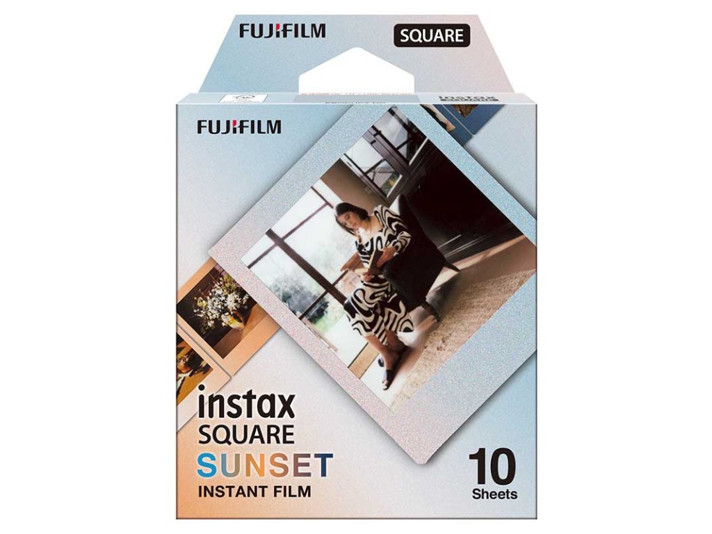 Design okrajů tohoto nového instantního filmu čtvercového formátu je inspirován jemnou gradací barev na obloze při západu slunce.