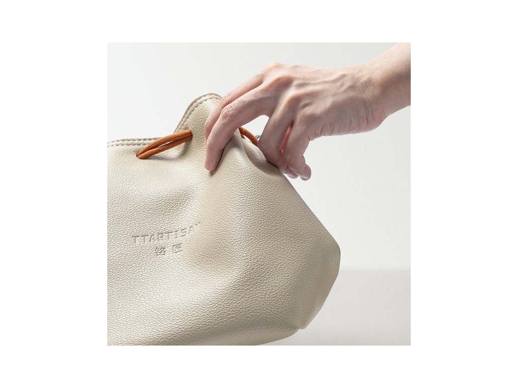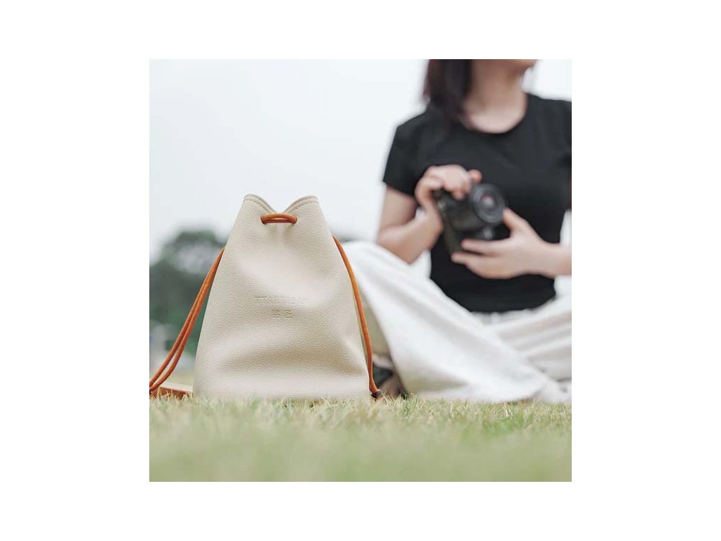 TTArtisan Camera Drawstring Bag představuje harmonii mezi jemným designem a praktickým využitím pro moderní fotografy cestovatele. Elegantní béžový povrch doplňují decentní hnědé detaily, navazující na stylové kombinace elegance i funkčnosti. Vyrobený z ekologické PU kůže a vybavený vnitřní sametově hebkou podšívkou, nabízí vak odolnost proti opotřebení i stárnutí, zároveň chrání techniku uvnitř a působí příjemně na dotek.