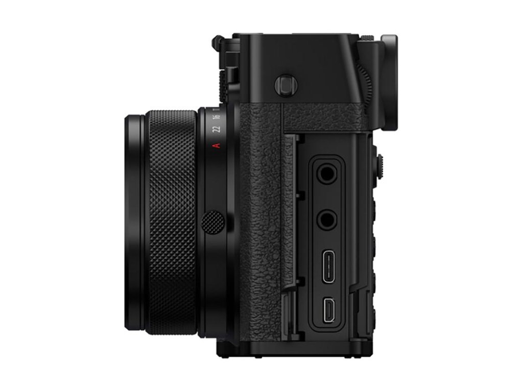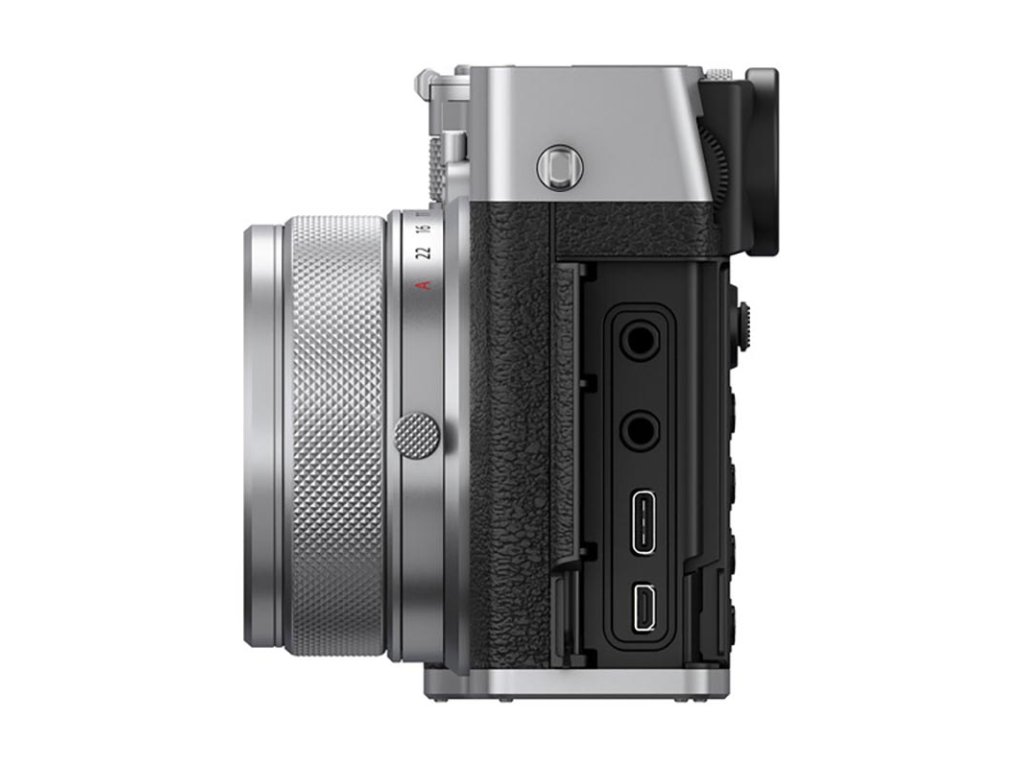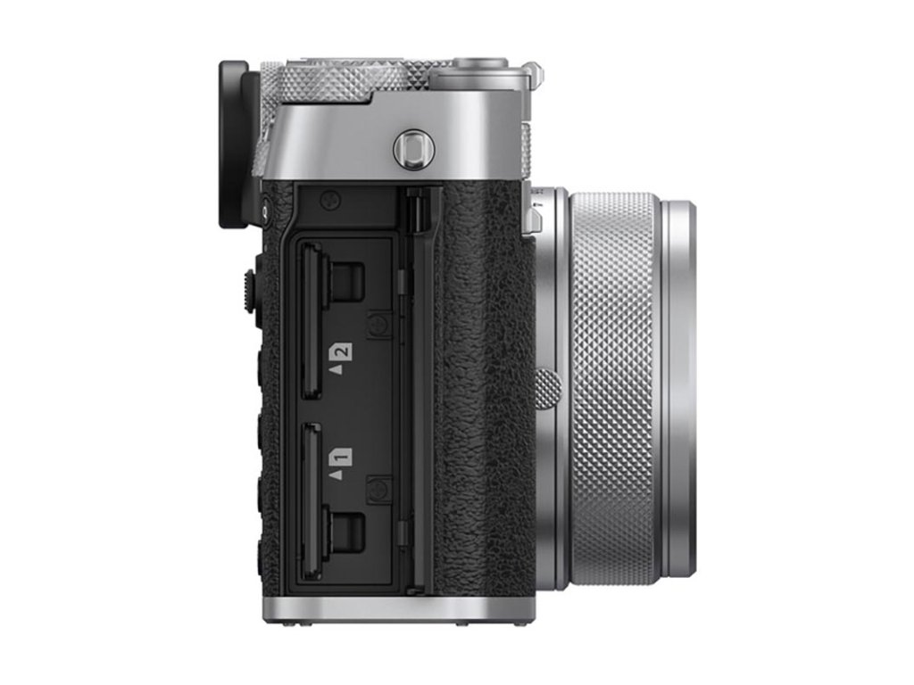 Pro flexibilní ukládání souborů jsou zde dva sloty pro SD paměťové karty. Levá strana těla fotoaparátu obsahuje 3,5mm porty pro sluchátka a mikrofon, port USB-C pro nabíjení baterie ve fotoaparátu a přenos souborů a též port micro-HDMI pro potřeby videa.