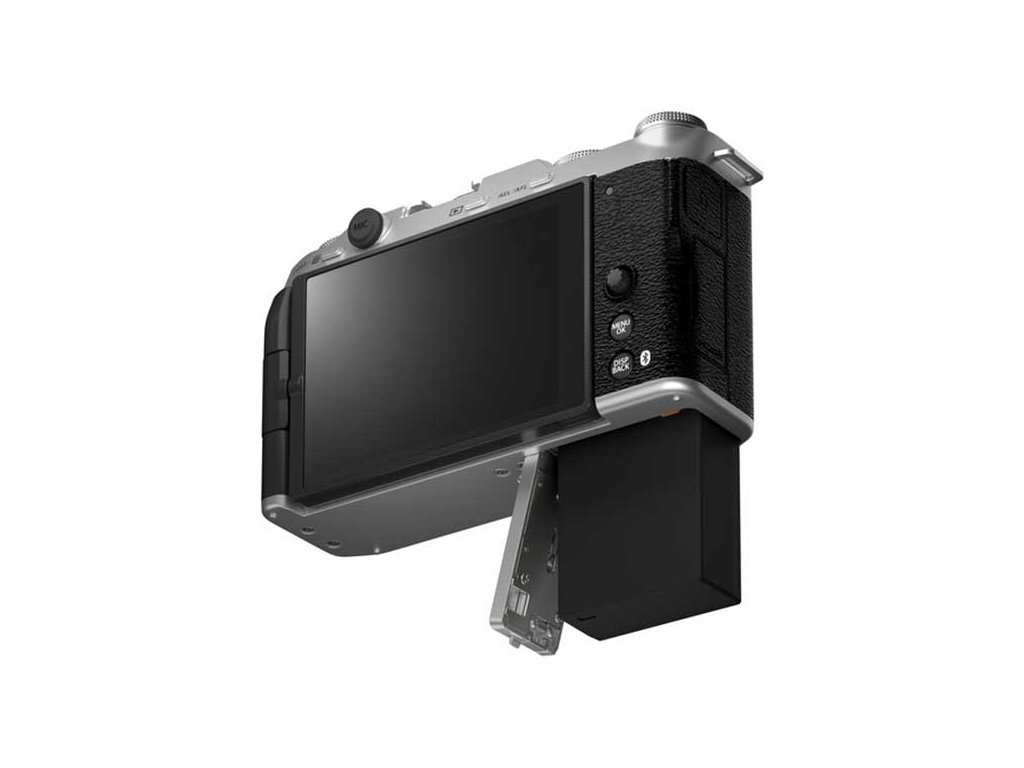 Fotoaparát je vybaven 3“ kloubovým dotykovým displejem LCD optimalizovaným pro samospoušť. S ohledem na potřeby tvůrců společnost FUJIFILM přesunula umístění konektorových portů na pravou stranu fotoaparátu, čímž eliminovala rušení drátů s monitorem. Také port mikrofonu byl přesunut z boku fotoaparátu na zadní stranu. Slot pro SD kartu UHS-I je ve spodní části přihrádky na baterie. X-M5 používá baterii Fujifilm NP-W126s, která vydrží přibližně 330 nebo 440 snímků, pokud používáte eko režim. Pomocí konektoru USB-C lze baterii nabíjet i při používání fotoaparátu.